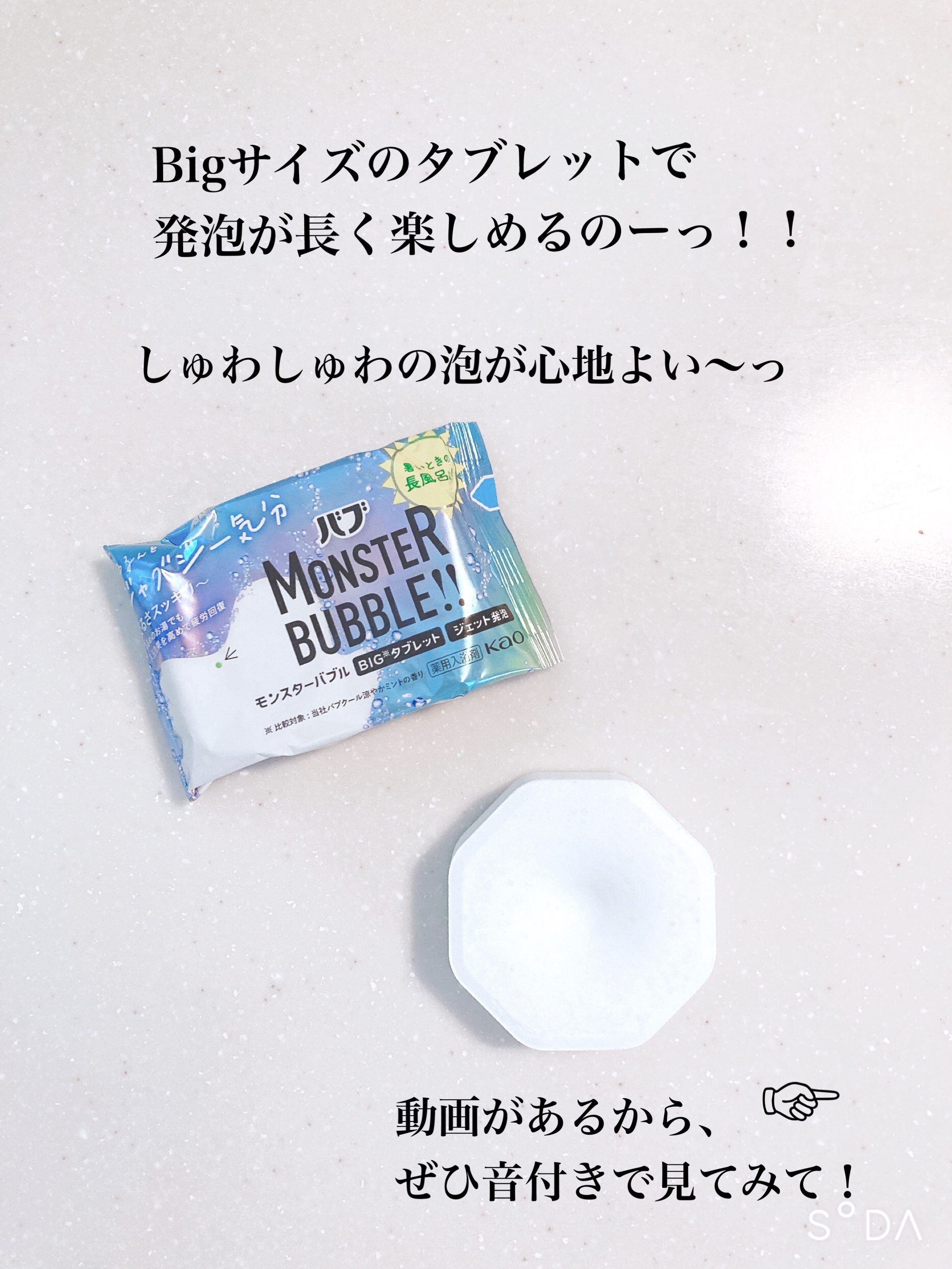 とにかくタブレットが大きくてびっくり! 湯船に入れるとすごい発泡力! さわやかなハーバルレモンの香りが夏の暑い時期にぴったり✨ 暑い時期でもお風呂時間を楽しめました♡