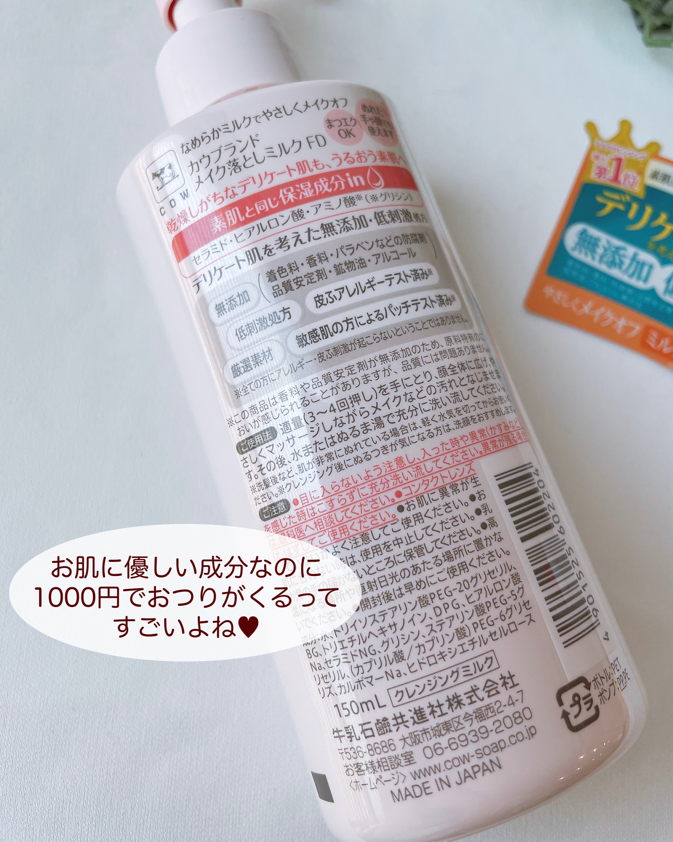 商品詳細情報カウブランド無添加 メイク落としミルク