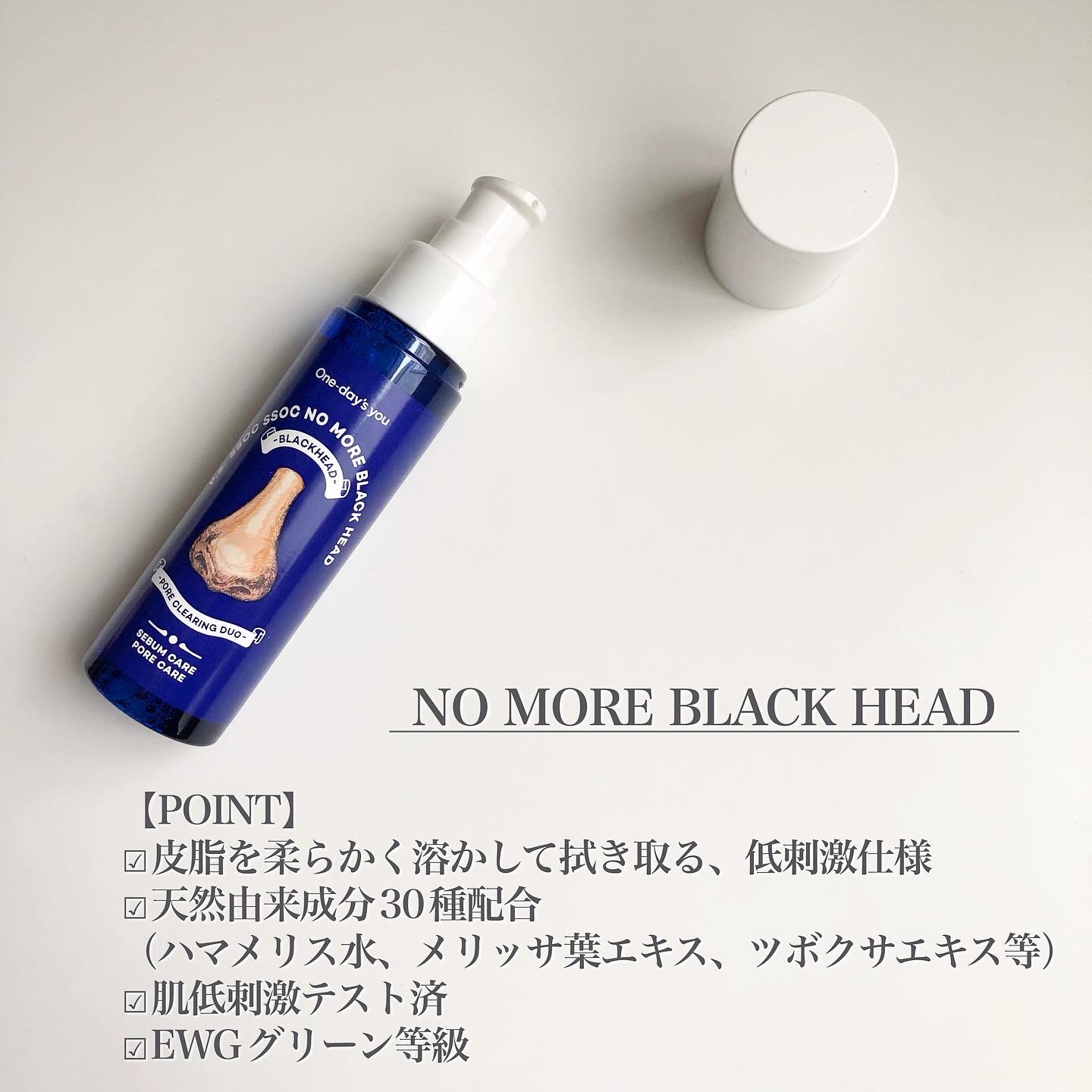 抜かない・剥がさないブラックヘッド除去👋✨オールスキンタイプ対応👌◎💙One-day'syouノーモアブラックヘッド¥1,500(税込)毛穴に詰まった皮脂をやさしく溶かしてサッと落としてくれる✨️ハマメリス水、メリッサ葉エキス、ツボクサエキス...