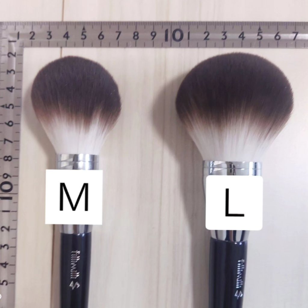 Lサイズはブラシが手の甲くらいの大きさだから、1回ファサ〜って付けただけで広範囲にパウダーがつけれるの😳 縦の長さはMサイズと同じなんだけど、ブラシ部分のボリュームがアップしてるから、フワフワが輪をかけてフワフワで☁️☁️☁️ マイクロ毛の高級人工毛で粉含みがいいから、ブラシから粉が溢れることなく全部ブラシの中に入ってく🥳 本当にプロのメイクの仕上がりに近くなるような、毛穴一個一個がキレイに隠れるようにパウダーがつくから感動🥺✨ ツールを変えるだけでメイクの仕上がりがグンも良くなる👍 まだMサイズならお試しの在庫があるみたいだ本当にこれオススメだよ☺️