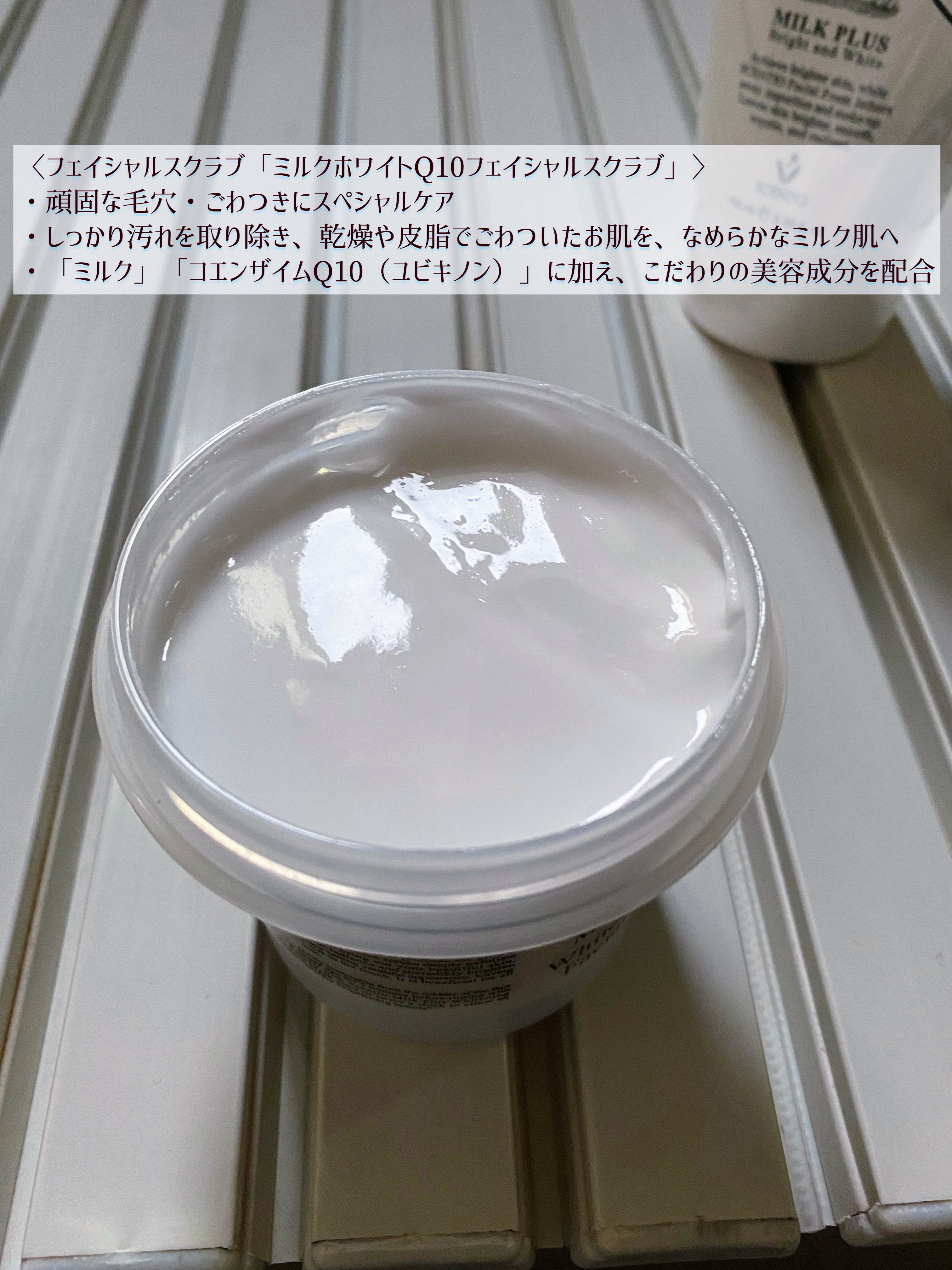 ミルクプロテイン配合でうるすべ肌に アミノ酸系洗浄成分×高級アルコ-ル系洗浄成分 洗顔料はバターみたいなむちむち濃厚系。香りもバターっぽい気がしました! ミルクプロテインの洗顔でつるんとなめらか肌に ︎⸝⋆︎