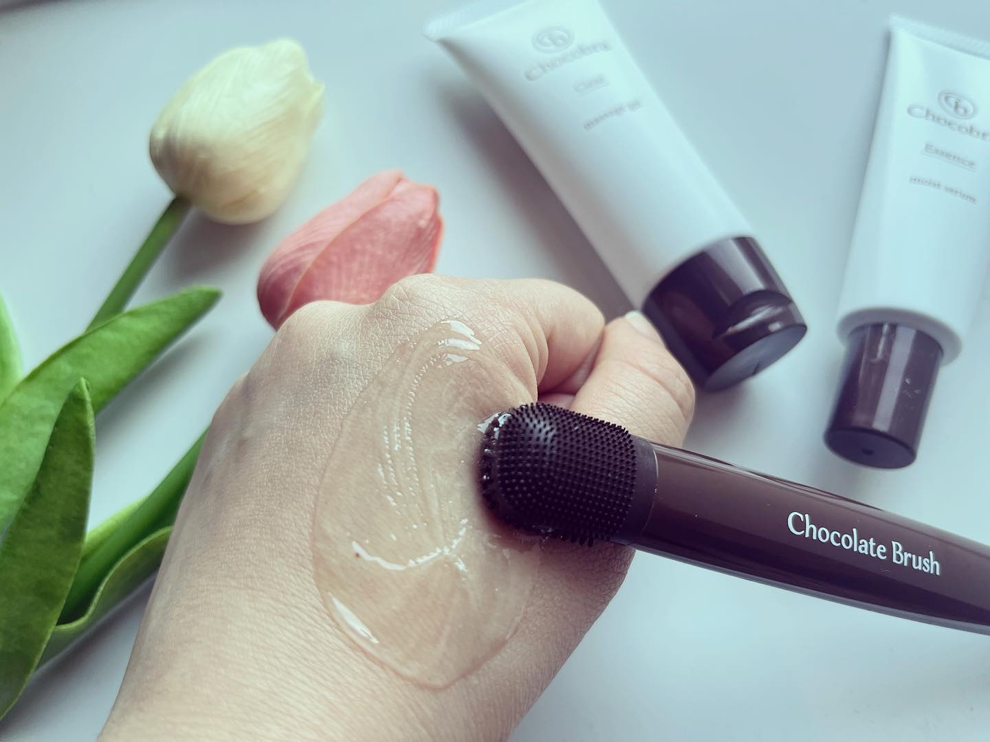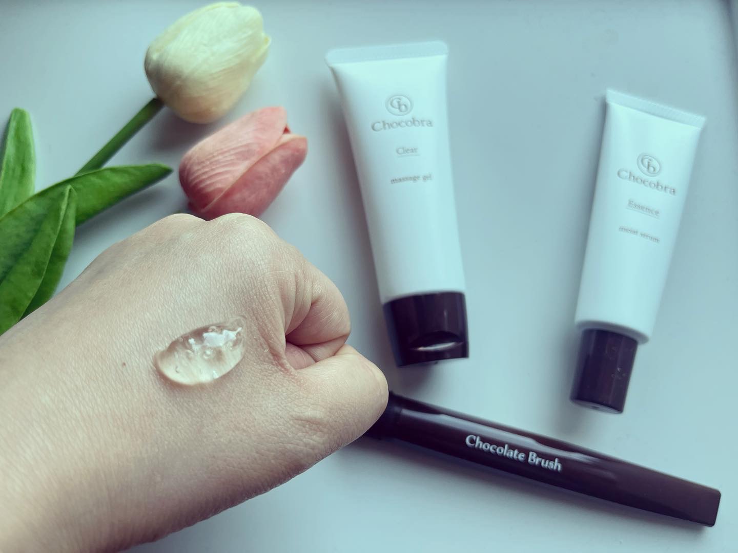 マッサージジェルは、弾力があってねっとりとしたテクスチャー じんわりとした温感 厚みのあるジェルが肌との間のクッションになって摩擦レスな使用感 柑橘系の良い香り🍋 ジェルを塗布したら、シリコン製のブラシでクルクル気になる小鼻周りをマッサージ ! シリコンなので肌あたりもまろやか デリケートな肌の方にもおすすめ 美容液も爽やかな柑橘系の香りふわっと香ります🍋 伸びの良いみずみずしい使い心地 簡単3ステップなので、続けやすいです♪