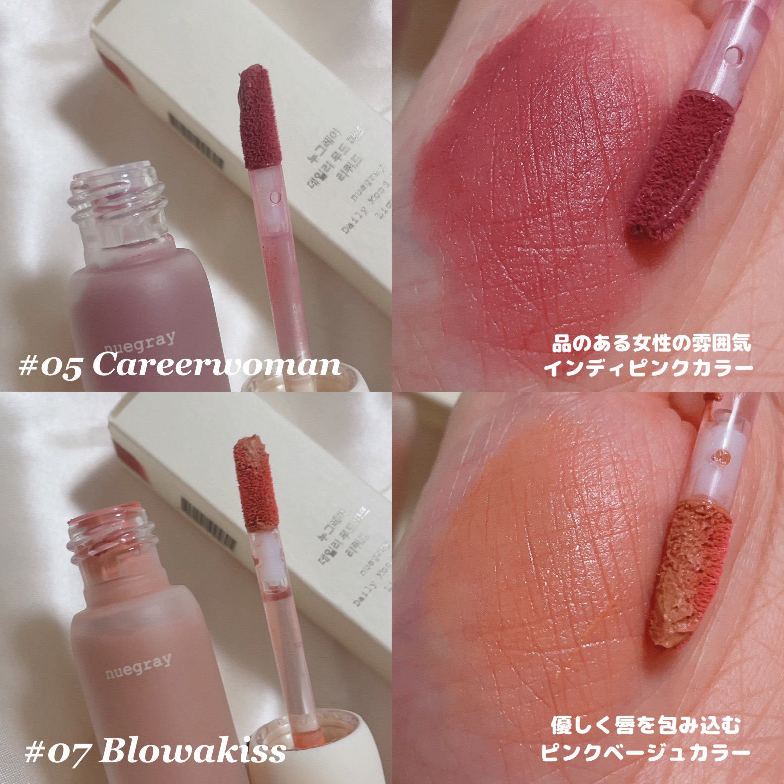 しっとりスフレのような軽いテクスチャー なめらかな塗り心地で密着力があり唇のシワも綺麗にみせるマットな仕上がりに◎ ふわっとした質感で大人っぽくすみピンクがとてもかわいい😍 デイリーエッセンシャルカラーなので普段メイクにも使いやすい💄 一度塗りでもよく発色しますが重ねて塗ると更に鮮やかなカラーに♪ チークとして使ってもGOOD!