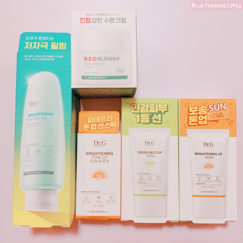 Dr.Gはクリームが本当に使い心地が良くて大好きな韓国のスキンケアブランドです🤍 ブライトニングアップサンプラスはピンクベージュカラーで下地として使うことも◎ 紫外線を肌に吸収せず、焼けない作りになっているそうです🩷 どちらもツボクサ、ドクダミ、プロビタミンDのスキンケア配合でお肌に優しい作りになってあるのが嬉しい😻 日焼け止めってピリピリしたりする事があるのですが、こちらはそんなことも無くとっても使い心地が良くてお気に入りになりました🫶🏻✨️