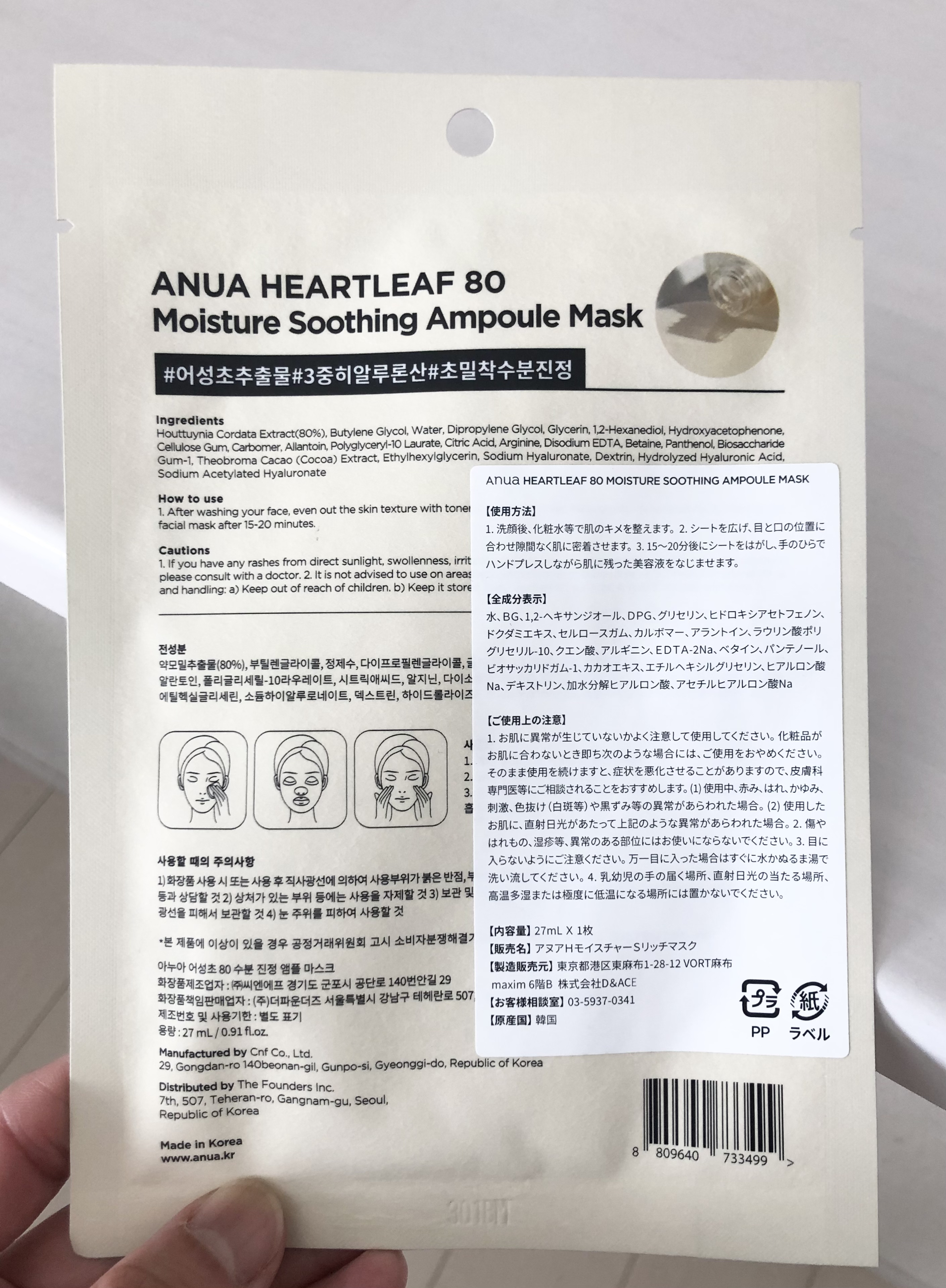 ドクダミ80%水分鎮静アンプルマスクパック ドクダミ水分アンプルのゆらぎ肌ケアそのままで水分感をプラスしたドクダミ水分鎮静マスク 高濃縮アンプルをしっかり含んだ密度の高いしっとり感 肌をやさしく包むソフトフィットシートでピッタリ密着 植物由来ヴィーガンシートやわらかい触り心地とともに顔のかたちにフィットして、肌をやさしく包み密着してエッセンスの吸収を高めます。