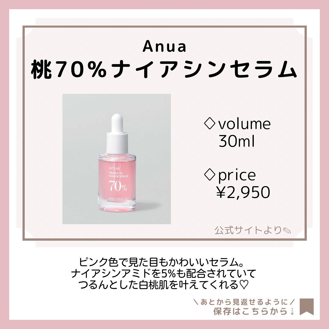Anua 桃70%ナイアシンセラム | 2,579円 |