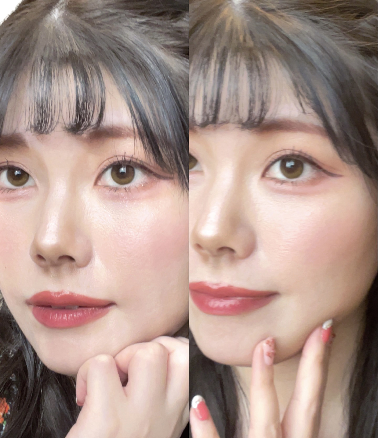 全体的にピンクのメイク(ピーチやコーラルのカラー)で仕上げて、大人っぽさの中に可愛らしさがあるというようなメイクらしい笑 使用したのは画像に載せたものです︎💕︎ UNMIX アイリッドニュアンス ダブル01 ピーチコーラル🍑 これ目もチークにも使える万能カラー✨ マスカラはフーミーのテラコッタピンク✨ ピンクでも盛れる可愛いカラー♥️✨ アイライナーはキャンメイクのクリィミータッチライナー09でした💦 部分的にさらにラメを足したいなあと思ってシピシピを黒目から地雷盛りラインの下までにON🍑 リップは下にアルミュージュを土台にして、グラデーションに泥リップ ツヤ足しに、イブサンローランを( ¯ᵕ¯ )♡