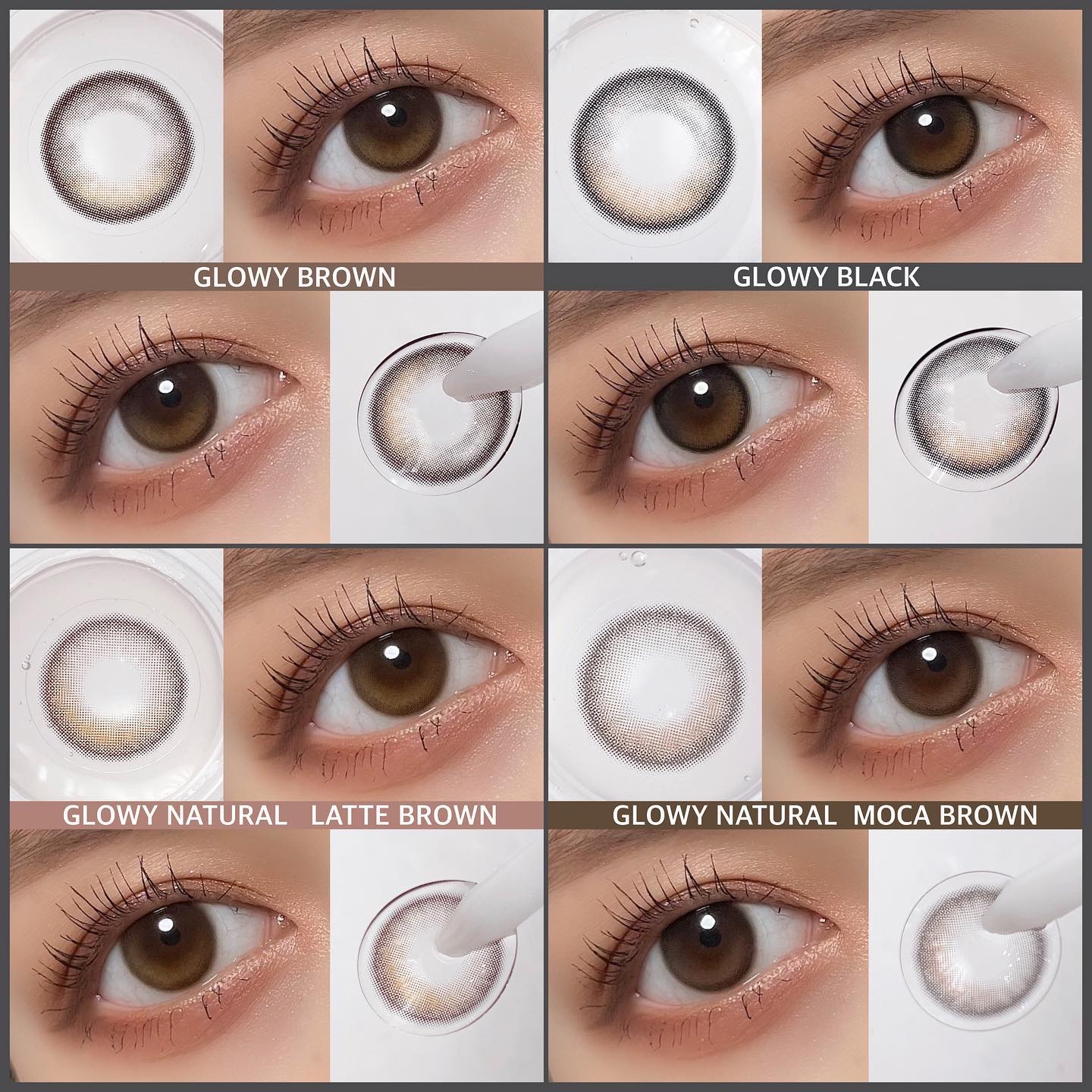 水光カラコンと言えば𝗢𝗟𝗘𝗡𝗦 𝗢𝗟𝗘𝗡𝗦と言えば𝗚𝗟𝗢𝗪𝗬🇰🇷 グローイの中でも1番王道なブラウンはダークブラウンにミルクブラウンのハイライトでま!じ!で!光の入りが超自然で群を抜いて綺麗✨💫 最近登場したブルーの水光💙濃く深みのあるブルーが深海から上を見上げてるような光り方🌊