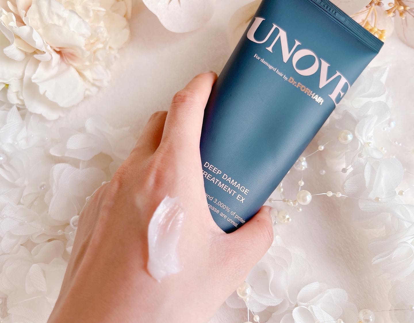 \今、LIPSで人気のリピーター続出ケアケア!/【UNOVE】ディープダメージトリートメントEXカラーやアイロン、コテによる傷んだキューティクルに必要なタンパク質を補給し、サラツヤな髪の毛へ導くヘアトリートメント😊🩷手に取るとこっくりとしたテ...