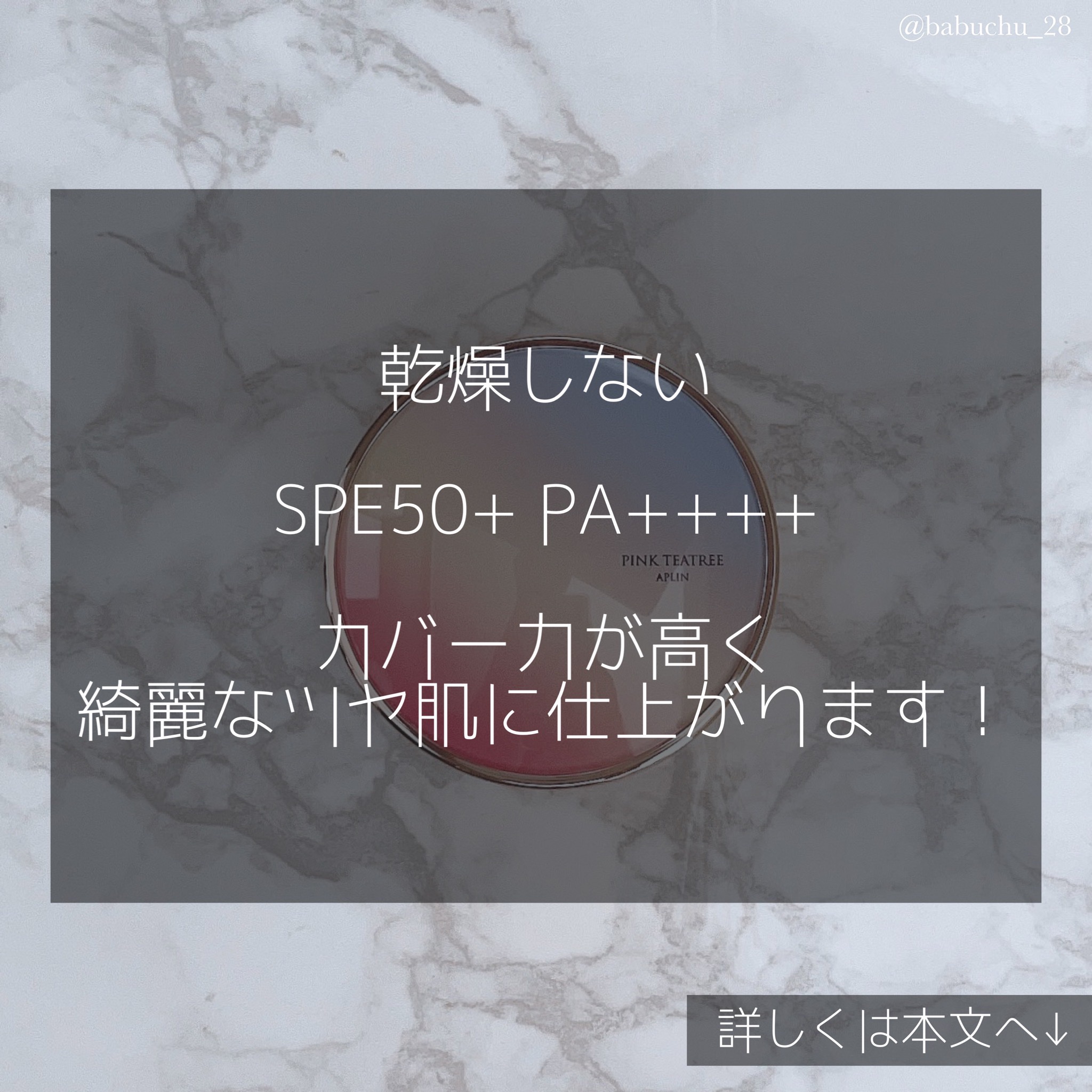 APLIN ピンクティーツリーカバークッション 21号ライトベージュ 2,490円(税込) 少量でよく伸びてハイカバー! 赤みやくすみをしっかりカバ一できるのに、厚塗り感のないなめらかな仕上がり♡ ハイカバーなのにナチュラルなツヤ感とサラッとしつつ、乾燥崩れしにくい仕上がりに感動します!!