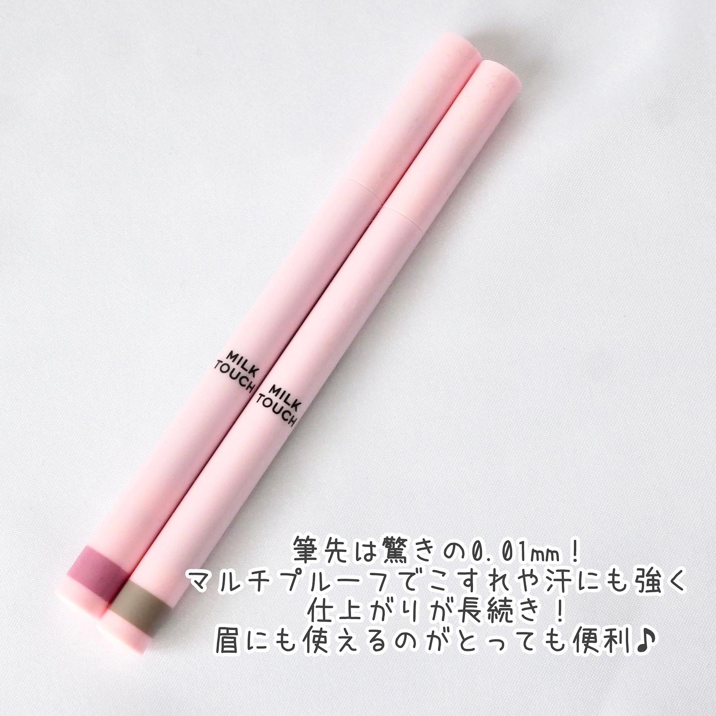 - ナチュラルな陰影が簡単に描ける、MILK TOUCH初のアイライナー。陰影ポイントを活かして目の大きさ*も可愛さもアップ!自然な深みで描くだけで大きな目元を演出。 《POINT 01》2つのシェードカラー!2色とも使いやすくナチュラル/ガーリーとそれぞれの効果が異なるムーディなカラー展開 《POINT 02》極細 & 弾力のあるブラシ!弾力性を最大限に活かした0.01mmの極細ブラシで思い通りの陰影ラインを描けます。 《POINT 03》にじみにくい持続力!マルチプルーフなコーティング膜で水や汗に強く、持続力UP。速乾性のリキッドタイプで油/水分に強く、にじみにくく長持ちします。 *メイク効果による