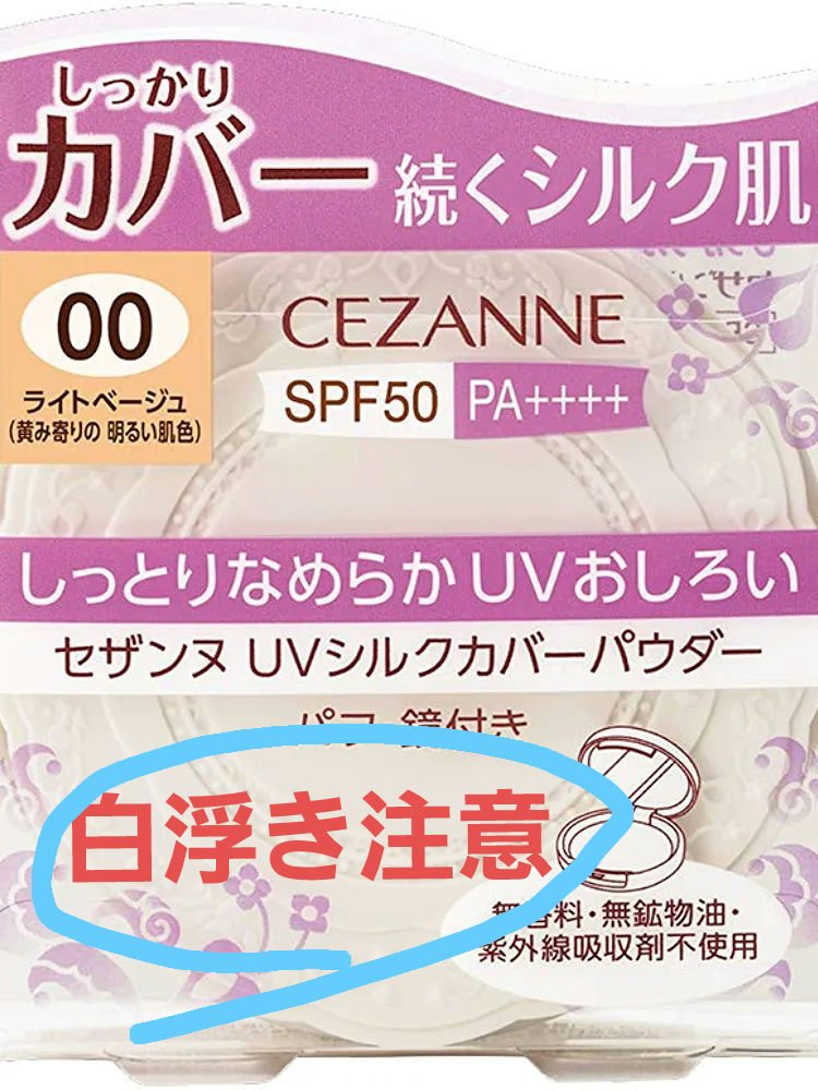 - SPF50・PA++++ カバー力が高く、しっとりシルク肌が続く。 SPF値の高いおしろいで、お肌を紫外線からしっかり守ります。 ソフトフォーカス効果の高いふんわりカバーパウダーが毛穴もしっかりカバー。 厚塗り感のない、なめらかなセミマット肌に仕上がります。 クレンジング不要で、洗顔料で落とせます。(単品使用の場合) ノンケミカル処方(紫外線吸収剤不使用) 16種類の美容液成分配合のしっとりなめらか処方。 メイク直しに使ってもぱさつかず、使うたびにお肌を保護します。
