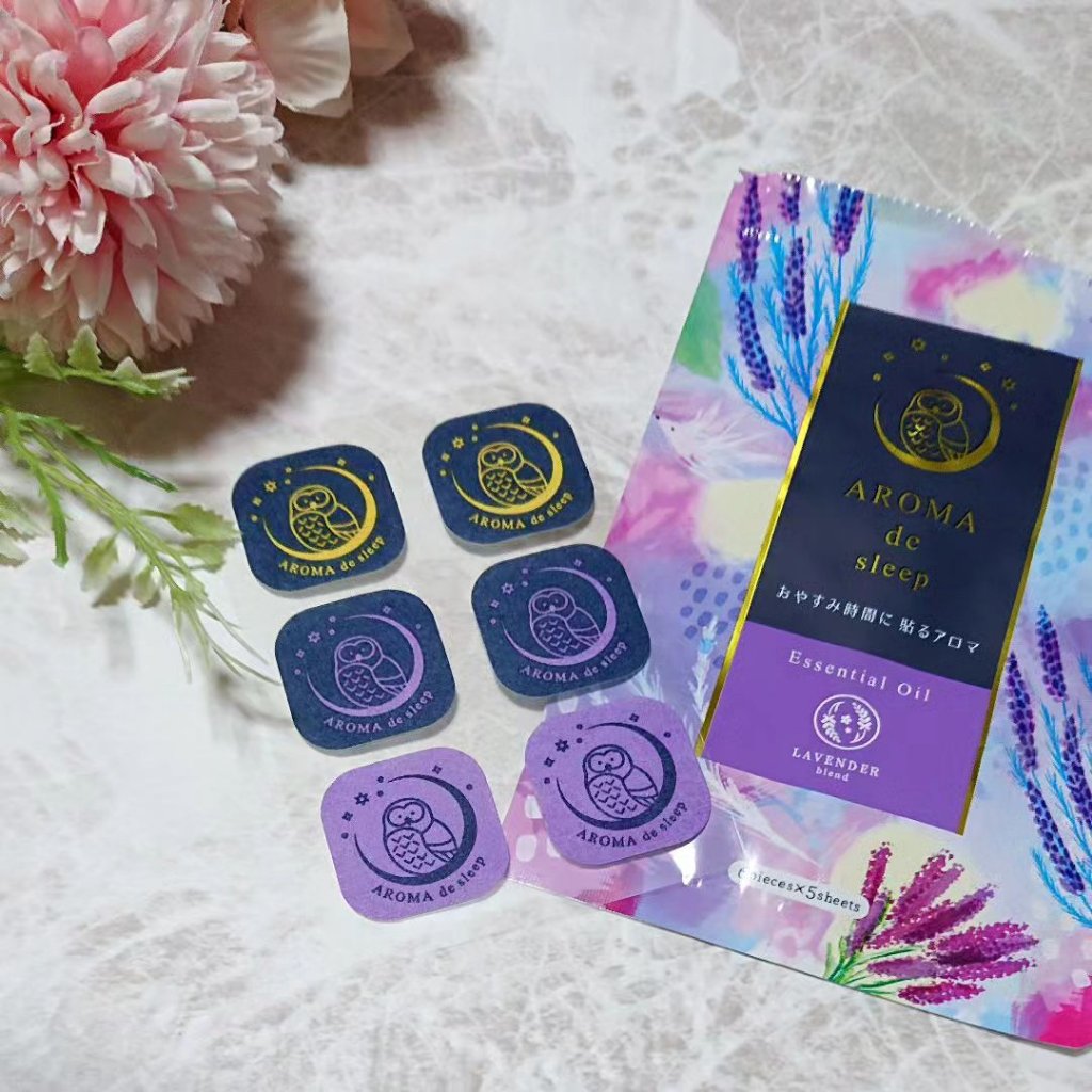 おやすみ時間専用に特別にブレンドした贅沢なアロマの香りで心地よいおやすみ時間をサポートします。 副交感神経を休ませたくて意識しています。 パウチタイプの商品で、デザインもとてもかわいらしいです。 封を開けるとラベンダーの良い香りがフワッと香ってきます 取り出してみるとふくろうのデザインの、四角い形のシールのようになっています。 1枚パジャマの襟元に使用しました。翌朝よく取れています🥲 貼っているとほんのりと香り、強すぎず弱すぎずなのも嬉しいです ラベンダーの香りはリラックス効果も期待出来るので、就寝時にはピッタリな香りだなと思います。