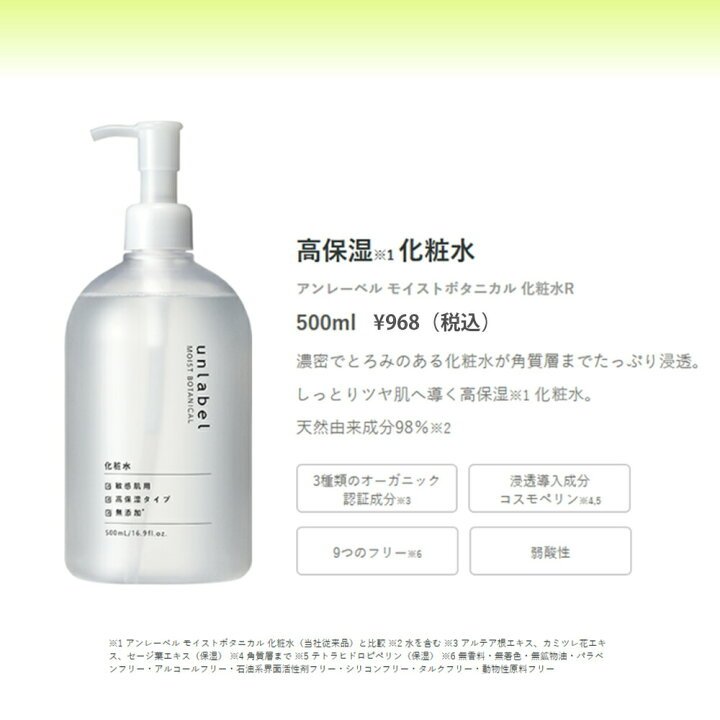 unlabel モイストボタニカル 化粧水R | 968円 |