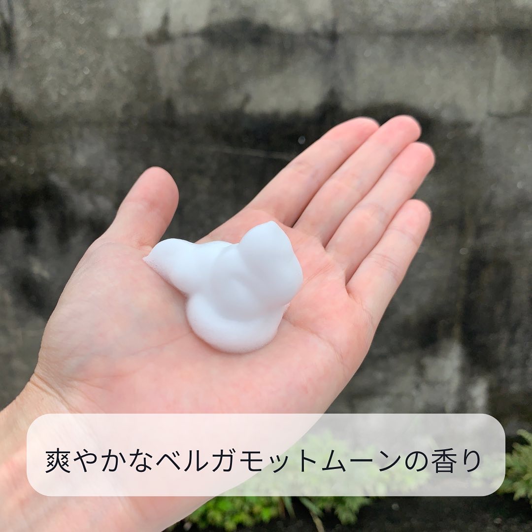 優しいふんわりとした泡がデリケートな身体を綺麗にさっぱりしてくれます^^✨ ほんのり香るベルガモットムーンの香りもまた癒されて良い感じ^^♡ パッケージも優しい印象でかわいい!