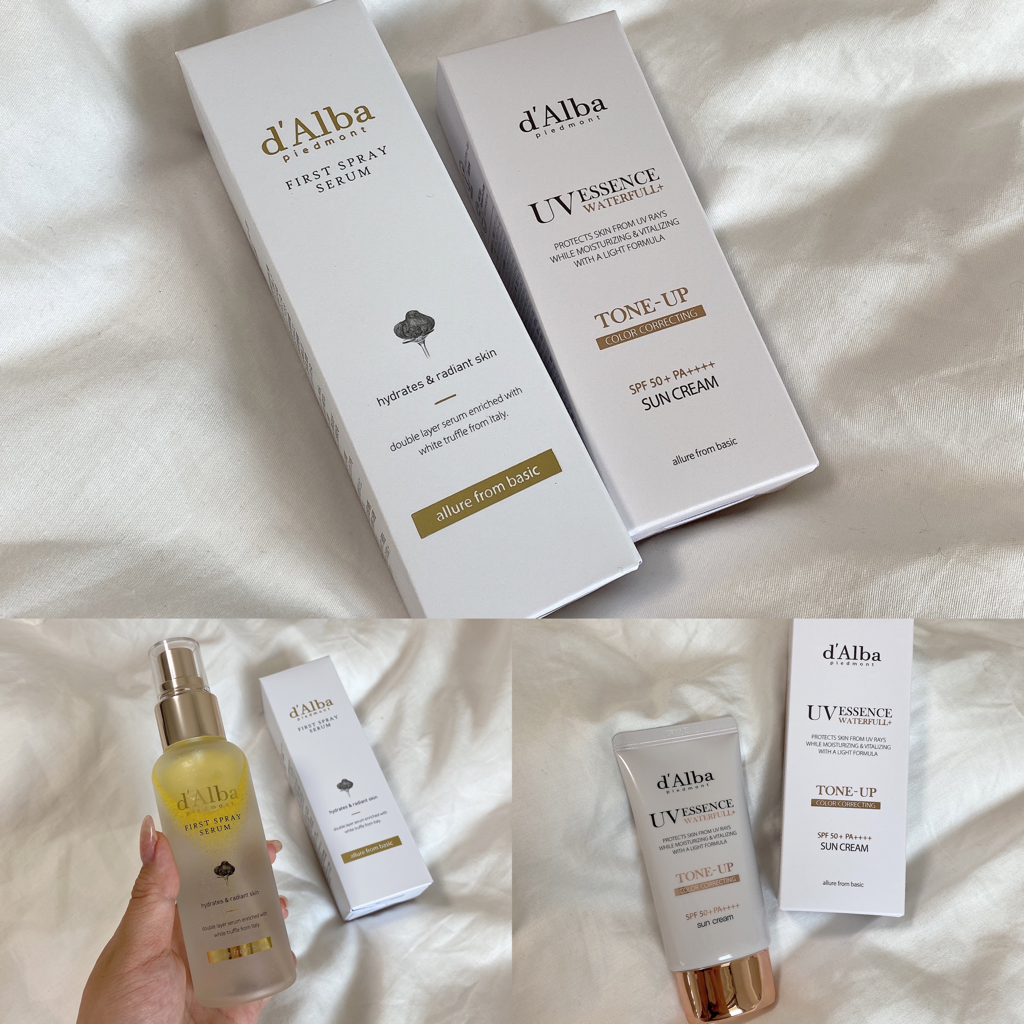\自分史上NO.1のツヤ肌へ✨/d'Albaミスト日焼け止めセット¥4,000Qoo10メガ割で購入...♪*゚🤍ホワイトトリュフファーストスプレーセラム🤍ホワイトトリュフとトコフェロールが入ったミスト!どの肌タイプにも使えて、お風呂...