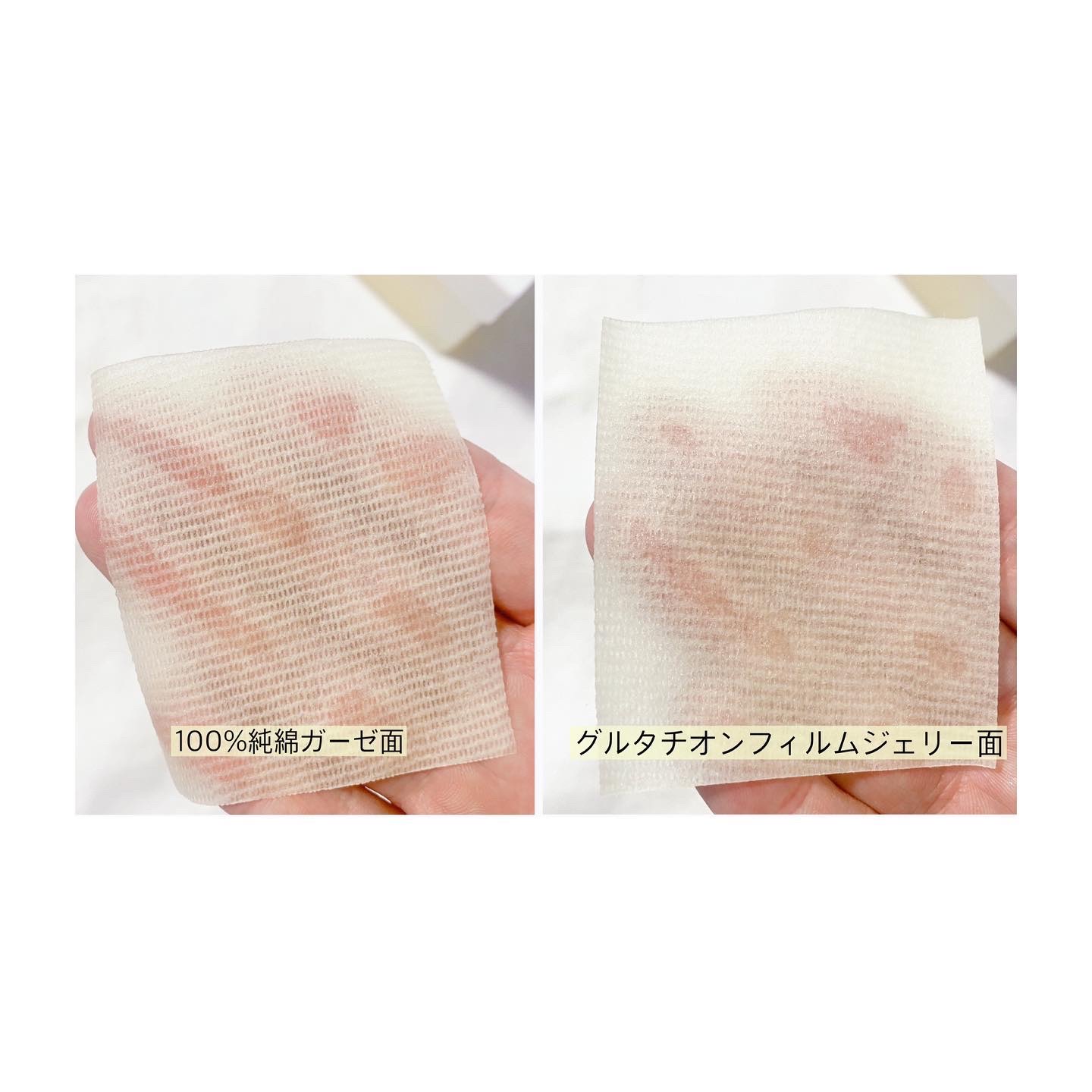 グルタチオン(整肌成分)とビタミン(整肌成分)をそのままぎゅぎゅっと1枚のフィルムパッドに! ぷるんとしたジェリー面でしっかりうるおいケア。ガーゼ面で拭きとりケアができる◎ ベタつかずにうるおい感もしっかりあって私はナンバーズインのパック系ではこの白玉グルタチオンCフィルムパッドが1番お気に入りかも!