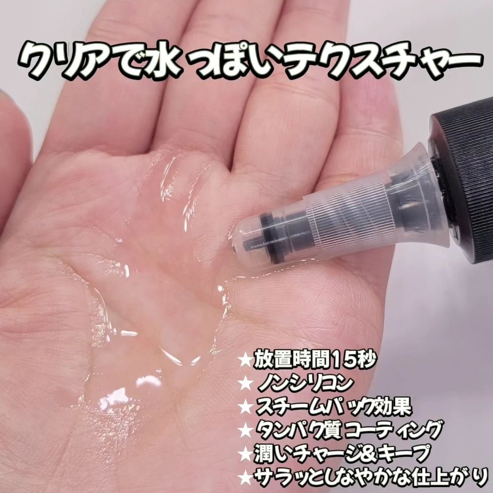 - 水を加えるとクリーム状に変化するウォータートリートメントがまるでサロンでケアを受けたようなツヤのある健やかな髪質に仕上げるトリートメント