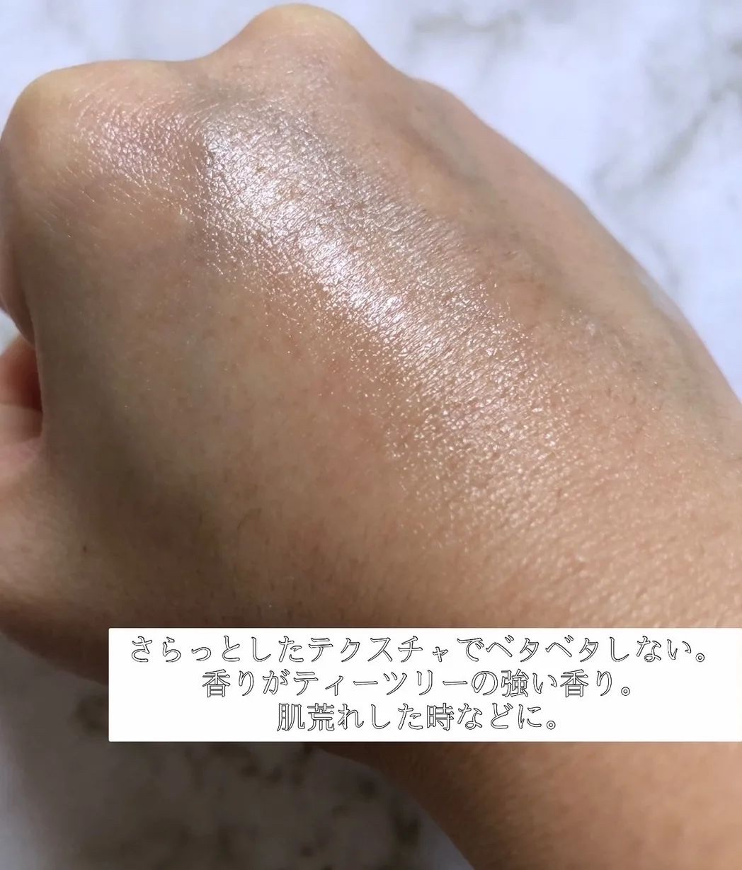 くさい!!!! 薬草かな…??少量しか塗ってないのに草むらに顔突っ込んだような匂いする← 長く使ってると、やっぱそこが難点で⭐︎4評価 お守り的な商品😂 なんかココ怪しいな〜って時に塗っておくのがおすすめ💡 早く効果的な秘密は、通常のティーツリーオイルより5倍濃縮された4-テルピネオールが主成分だからなんだって🐰