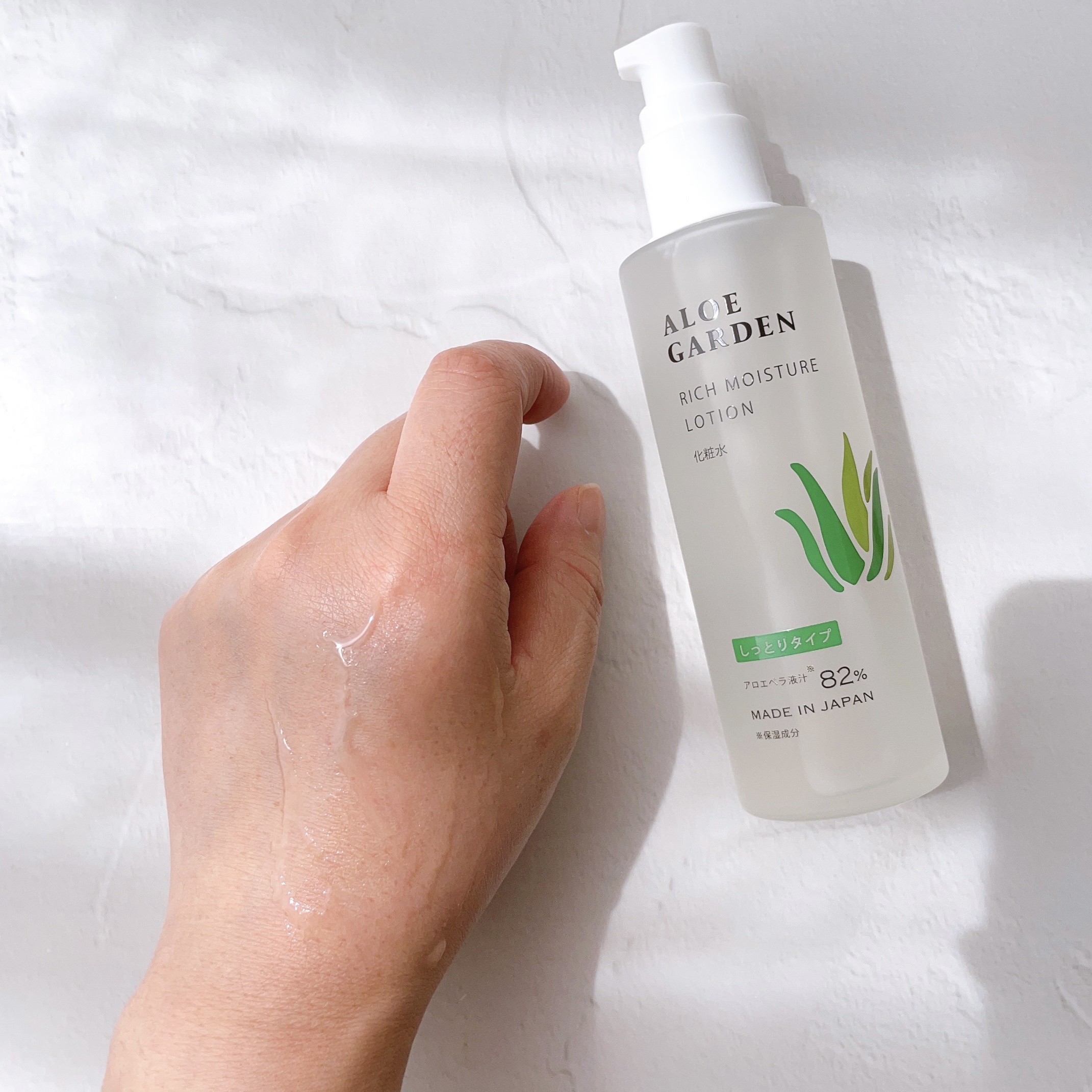 ALOEGARDENRICHMOISTURELOTION100ml水の代わりに保湿成分アロエベラ液汁を82%配合した化粧水肌の乾燥を防いで潤いを与えます。肌への馴染みがよい、ナチュラルな使い心地です。ほのかなローズの香りで癒されます。サラッと...