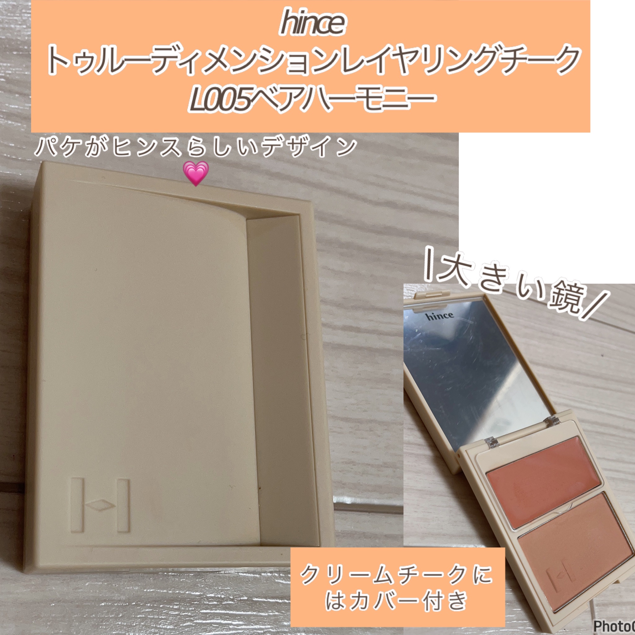 \hinceトゥルーディメンションレイヤリングチーク/L001アリュール・インザ・エアーL002 ニューシンフォニーL003ドリームライクL005 ベアハーモニー2色入りの肌馴染みのいいチーク❤️鏡もついてるしいい感じ#アイドル級主役チーク...