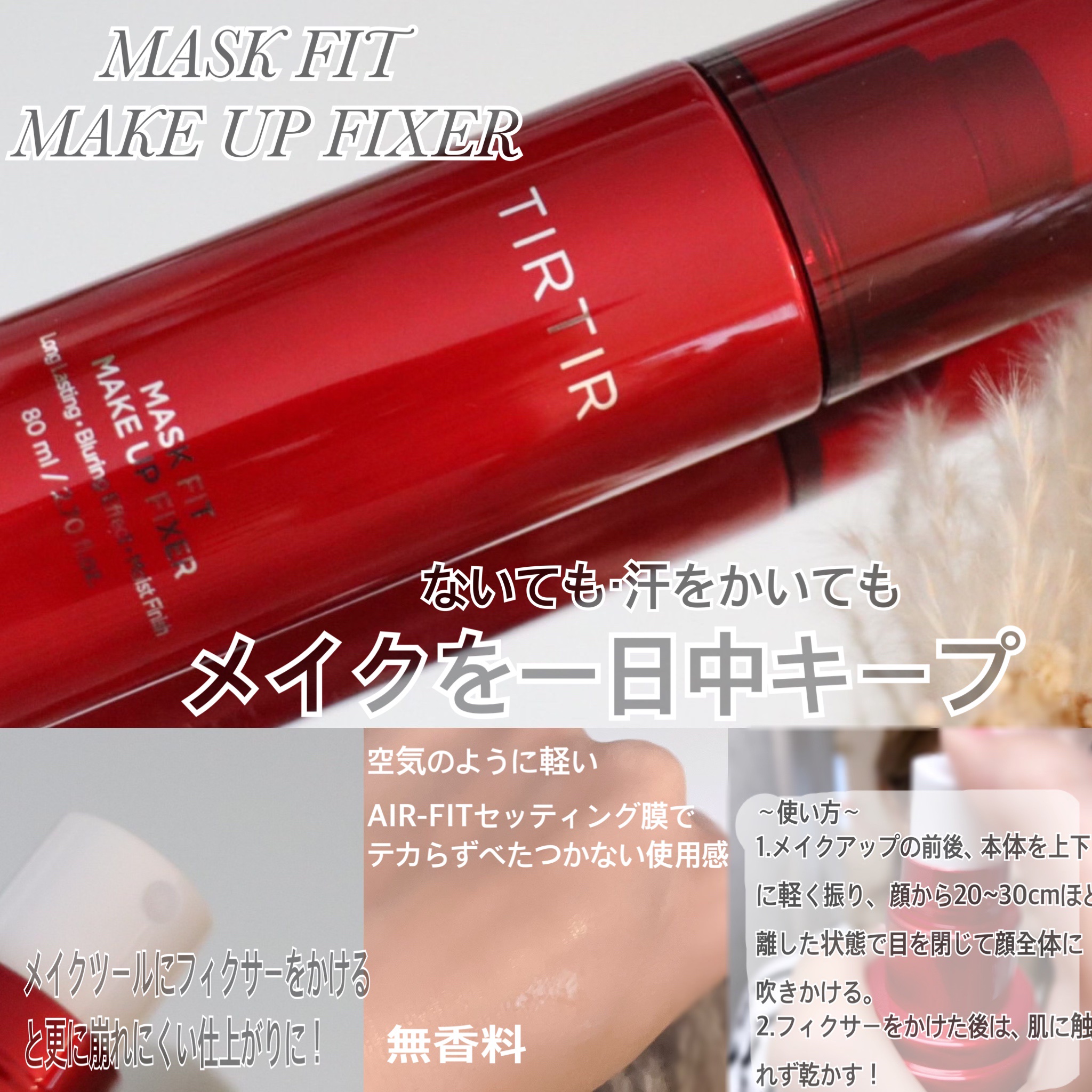 【TIRTIR】#コスメ購入品MASKFITMAKE-UPFIXERマスクメイクの相棒に、赤パケが目を引くフィクサー👀ふんわりと肌に広がるミストがメイクをしっかりホールド。マスクとのこすれや湿気対策として使用しています。テカリやベタつきが気に...