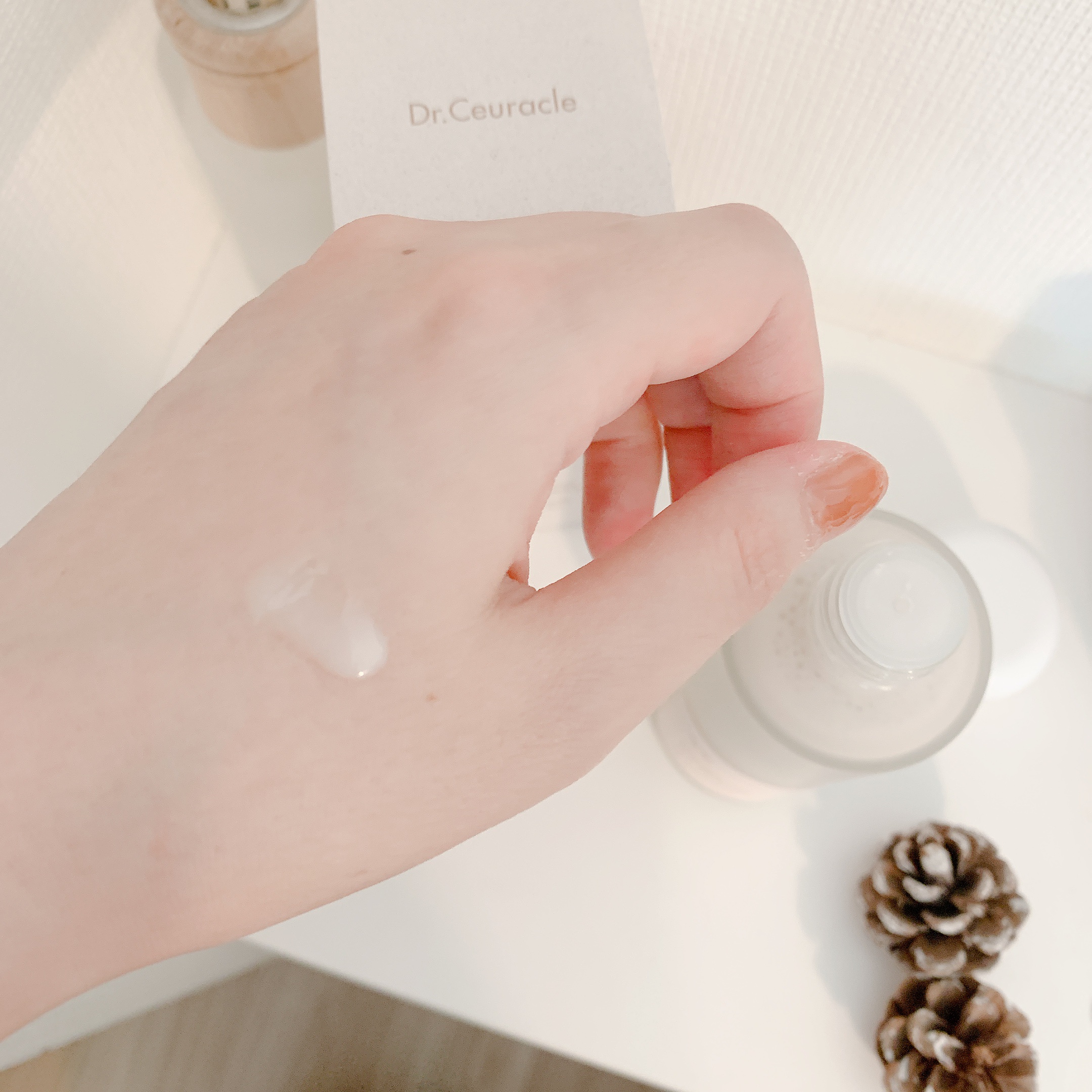 こちらは有効成分の「ナイアシンドアミド」配合✨肌の奥の真皮層までアプローチし、エイジング悩みのシワをケアしてくれます♪ とろみのあるテクスチャーで、マイルドな肌あたりです☺️ 肌馴染みが良くしっとりとした使い心地です✨ 一回の使用量は100円玉一枚分が目安と少量なんですが伸びが良いので十分でした🙆♀️ しっとりとした使い心地ですがべたつかないのが良いです✨
