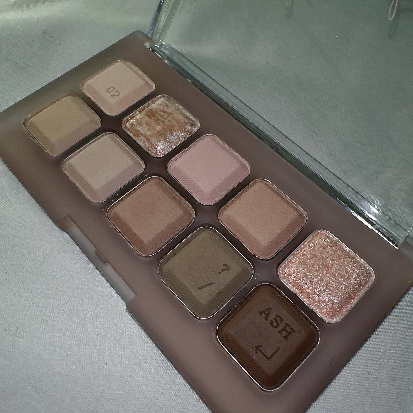 実は初めて買ったクリオのパレット!笑 パレット下の右から2番目、3番目のモーブカラーが気になりすぎて購入! パープルにブラウンが混ざったようなカラーでパープルもブラウンも普段似合わんからあんまりつけへんのに使ってみたくて笑 塗りすぎると殴られたみたいになるから明るめのアイシャドウと合わせたり薄めにつけたりして調整してる😁 クリオのシングルシャドウのラメが好きで有名なG10とかプリズムエア系も使ってるけどこのパレットに入ってるラメ硬すぎん?!私の使い方が悪いのかわからんけどボロボロする感じ…ホロラメとかってしっとりしたやつが多いのになんかボロボロする笑😂 プリズムエアのパレット欲しいなと思ってたけど質感変わってしまうならシングルで買おうかなと検討中💭