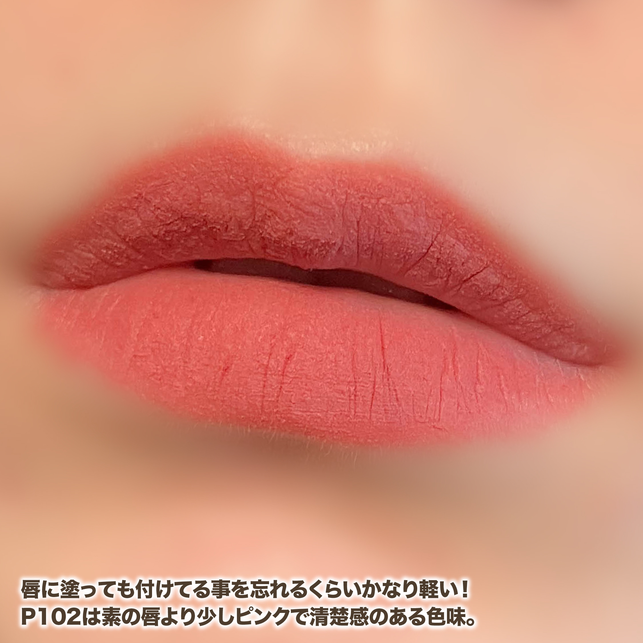 - 柔らかくて滑らか ムースのように軽くてふんわりとした塗り心地 高発色なのに軽いテクスチャー しっかり発色だけどぼかしやすい、軽いテクスチャーで唇を包み込むように密着 長持ちで乾燥しにくい ふんわりしっとりなムース質感で乾燥しにくく、潤いをキープ