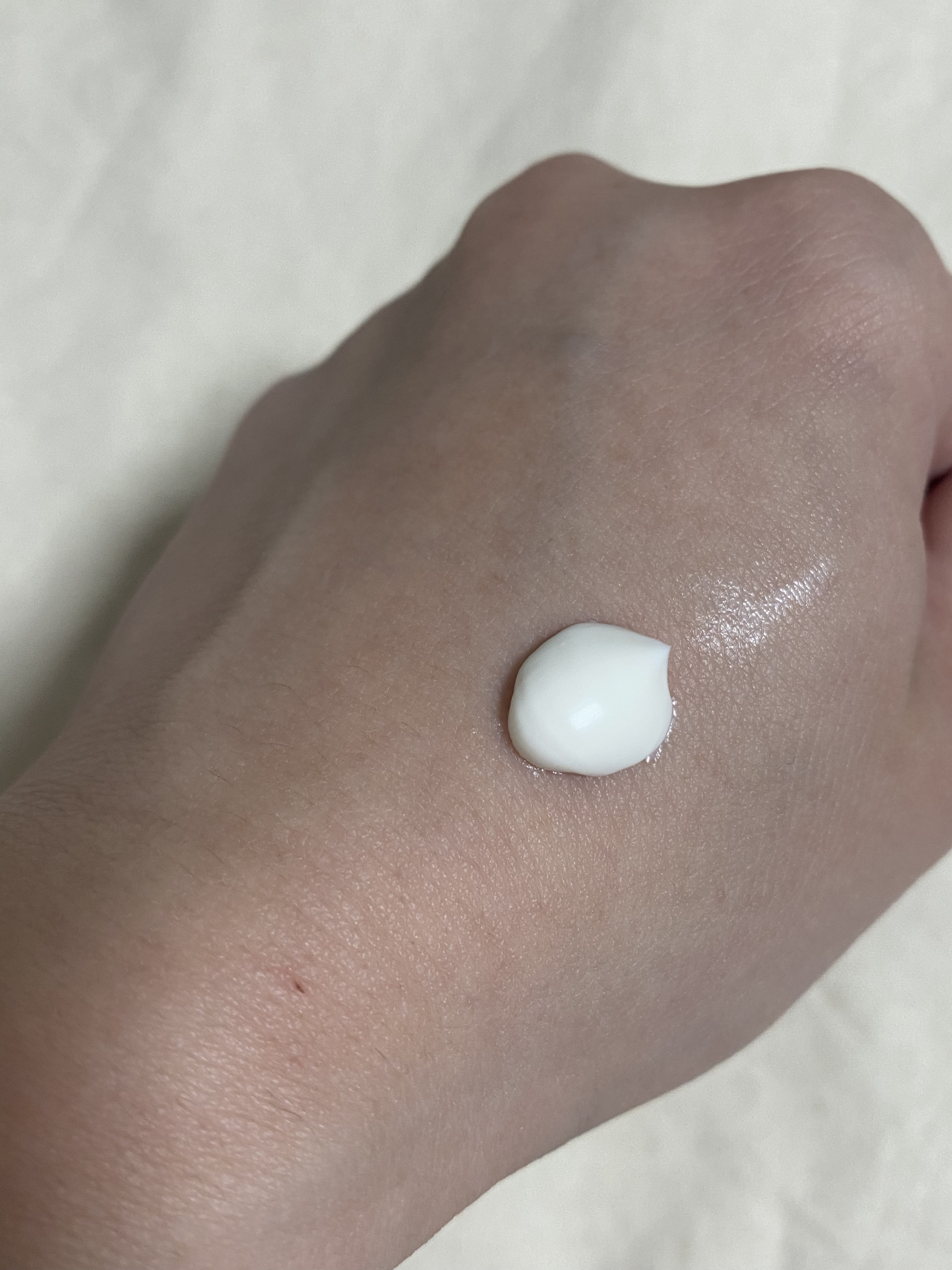 トーンアップするか否かの確認が漏れていて、無色透明のつもりで購入。開封時にパッケージを見てトーンアップやん!?!?となりました。しかしトーンアップと言っても艶で明るく見える程度の仕上がりで好みでした。 無色透明の方がベースメイク前に仕込むのに使いやすく、そのまま首やボディも塗れちゃうので手軽なんですよね。 塗りたては少しべたつくものの、時間が経つとベタつきは感じずしっとりとした触り心地に。