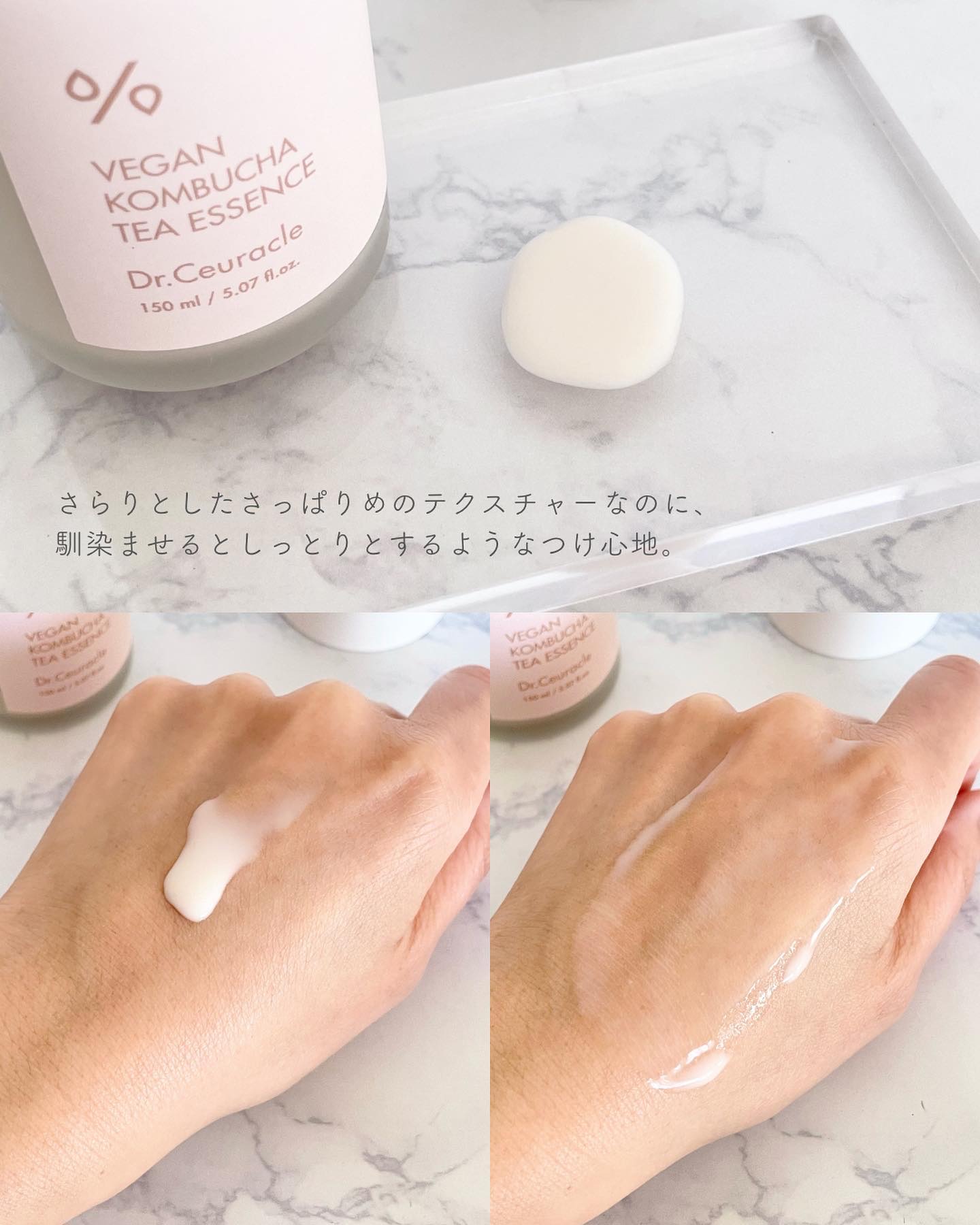 ヴィーガンコンブチャティーエッセンスは、オイルと化粧水の中間のような軽やかなテクスチャで、しっとりうるおうのにベタつかないのが特徴。 15:85の理想的な油水分バランスで、乾燥しやすい肌にもすっとなじみ、うるおいを与えながら肌を整えてくれるのが魅力。 水分クリームならではの軽いつけ心地で、肌にスッとなじみ、しっとりするのにベタつかず快適な使用感⊂( ˆᵕˆ )⊃