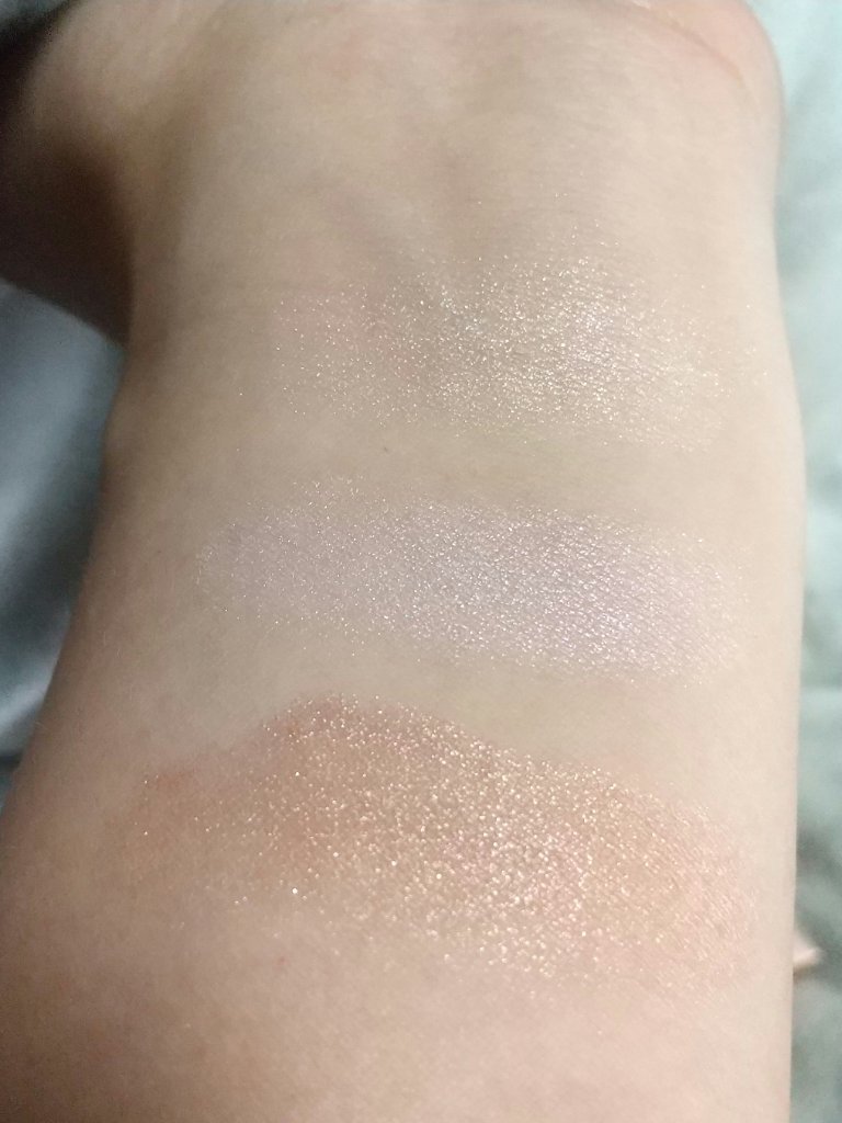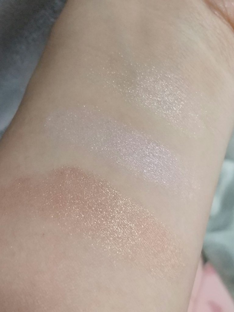 左上、左下、真ん中上、真ん中下、右上、右下という順番でスウォッチしてみました。 出してみると商品の写真より肌にのせたほうがくすみが出るかな✨という印象です😌 伸ばしやすくて指でも筆でもつけやすいです☺️💕 とっても可愛いカラーなのでオススメです💠