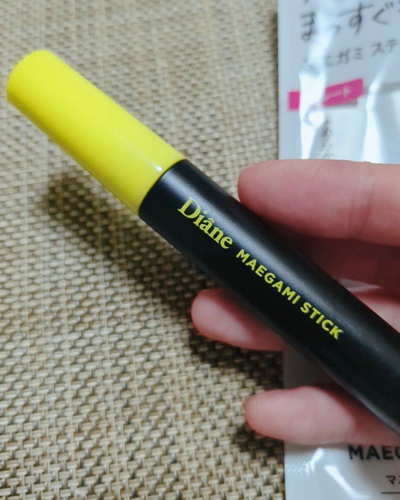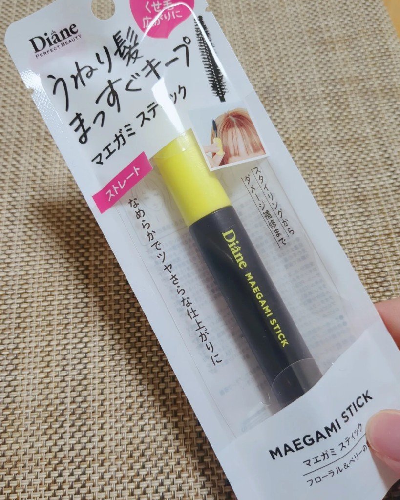 オン眉にしてから手放せなくなったのが前髪スティック 出かける前は頭頂部にピロピロするアホ毛を抑えに使って出先ではさっと前髪に通してリカバリーしてる前髪が割れてしまった時にも便利 使うとスタイルの仕上がりが格段によくなるから、ヘアセットが苦手な人にこそおすすめしたい ダイアンのマエガミスティックは、なりたいスタイルにあわせて選べる3タイプ 私はうねりが気になるのでストレートを バリバリまでじゃなくちょうどいい感じにキープブラシが大きめだからしっかり髪の毛を掴んでくれるのも使いやすい 外出にコスメポーチは持っていかないときでもリップと前髪スティックは必ずバックに入れてるよ