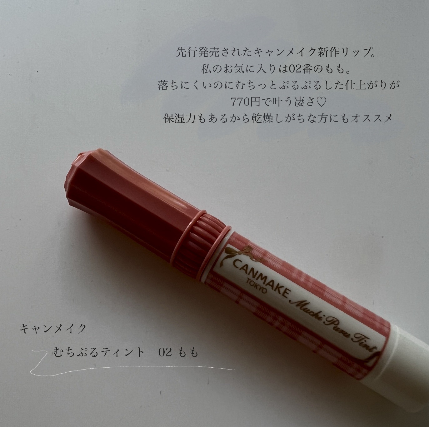 私の理想のピンクリップ、まさにこのむちぷるティントのモモがその色なんです! むちむちぷるんぷるんになります。 プランプは清涼感が若干あるだけで特に気になりません👍 冬場の乾燥シーズンにも愛用して行きたいです🥰
