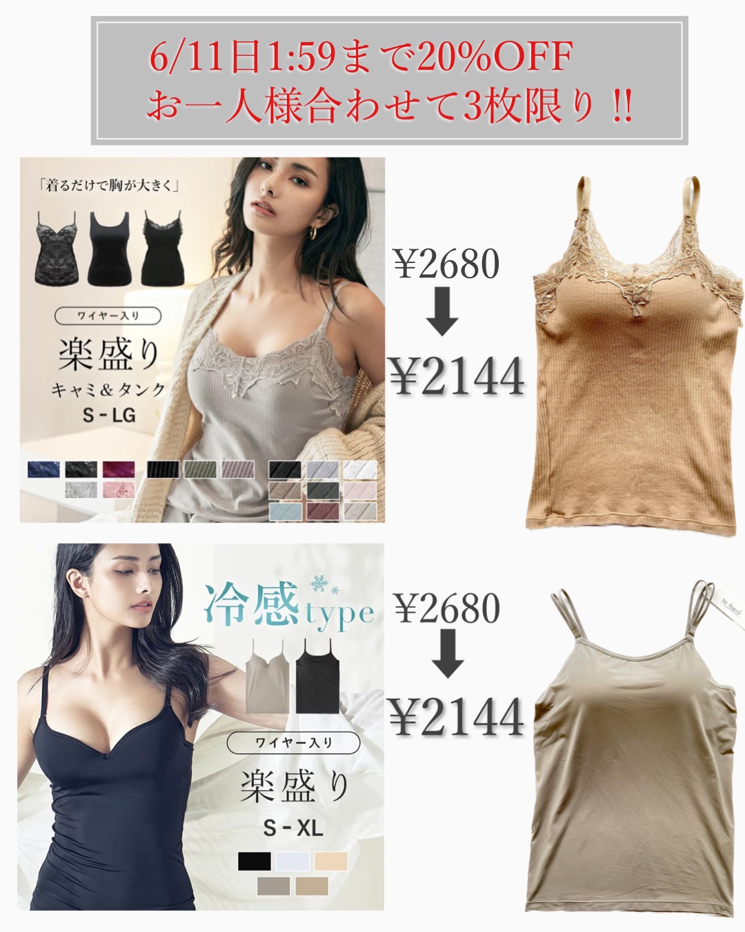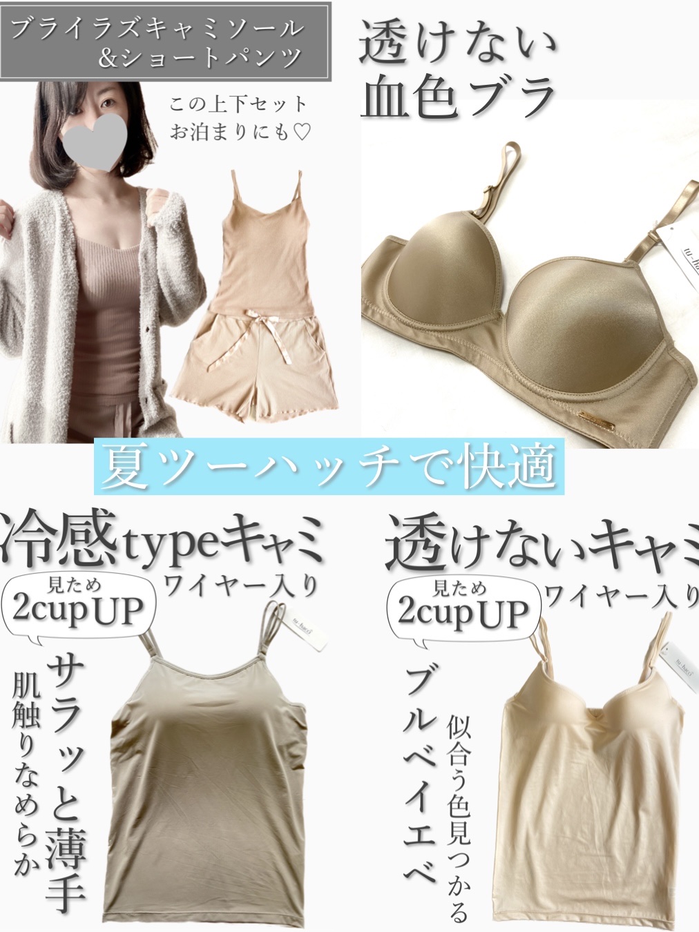 ノンワイヤーブラトップでナチュラル盛り♪締め付けも少なく快適なカップ付きインナー 選べるノンワイヤー、ワイヤー入り 私の購入したキャミソールタイプはオールシーズン着れるのでおすすめです! しっかりとした作りだったし、何より楽なのに盛りブラ並みの補正力が魅力、他の色も買う!