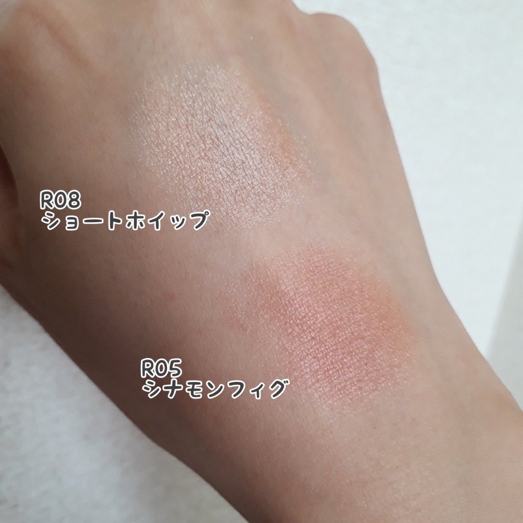 - 【全成分表示】 タルク、トリエチルヘキサノイン、リンゴ酸ジイソステアリル、イソステアリン酸水添ヒマシ油、ポリグリセリル-3ポリジメチルシロキシエチルジメチコン、ラウリン酸亜鉛、スクワラン、トコフェロール、メチルパラベン、(+/-)グンジョウ、シリカ、ホウケイ酸(Ca/Al)、マイカ、金、銀、酸化スズ、酸化チタン、酸化鉄、赤226" 【R01~R06共通】 タルク、トリエチルヘキサノイン、リンゴ酸ジイソステアリル、イソステアリン酸水添ヒマシ油、ポリグリセリル-3ポリジメチルシロキシエチルジメチコン、ラウリン酸亜鉛、スクワラン、トコフェロール、メチルパラベン、(+/-)グンジョウ、シリカ、ホウケイ酸(Ca/Al)、マイカ、酸化スズ、酸化チタン、酸化鉄、赤202、赤226" 【D01~D04共通】 ジメチコン、リンゴ酸ジイソステアリル、タルク、アルキル(C26-28)ジメチコン、(ジメチコン/ビニルジメチコン)クロスポリマー、スクワラン、カルナウバロウ、PEG-10ジメチコン、ポリメタクリル酸メチル、(+/-)グンジョウ、コンジョウ、ホウケイ酸(Ca/Al)、マイカ、酸化チタン、酸化鉄、水酸化Al" 【F01~F06共通】 ジメチコン、アルキル(C26-28)ジメチコン、(ジメチコン/ビニルジメチコン)クロスポリマー、リンゴ酸ジイソステアリル、スクワラン、PEG-10ジメチコン、ポリメタクリル酸メチル、カルナウバロウ、(+/-)グンジョウ、マイカ、黄4、酸化チタン、酸化鉄、水酸化Al、赤226" 【G01~G04共通】 タルク、合成フルオロフロゴパイト、トリエチルヘキサノイン、リンゴ酸ジイソステアリル、イソステアリン酸水添ヒマシ油、スクワラン、トコフェロール、ラウリン酸亜鉛、メチルパラベン、(+/-)マイカ、酸化チタン、酸化鉄、赤226