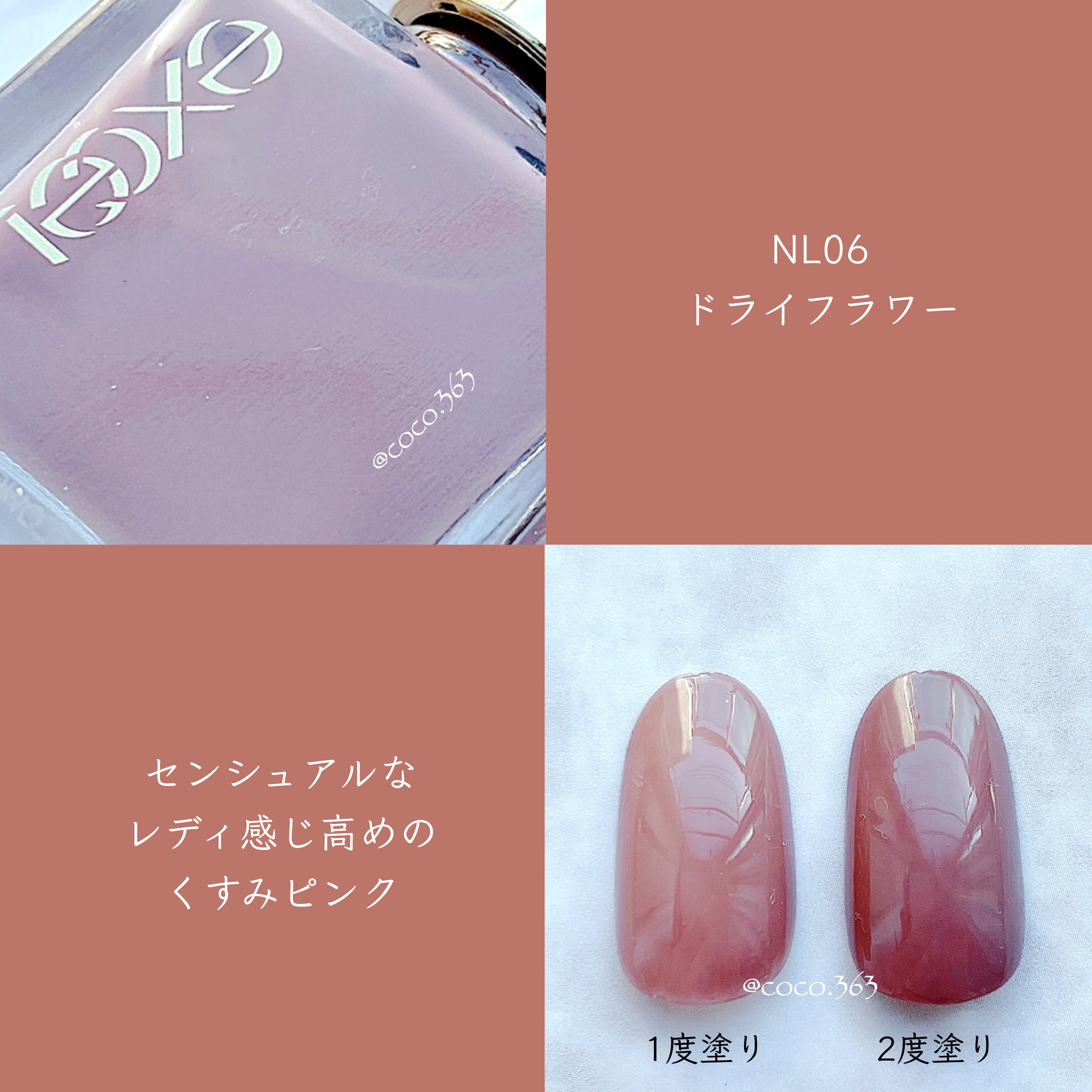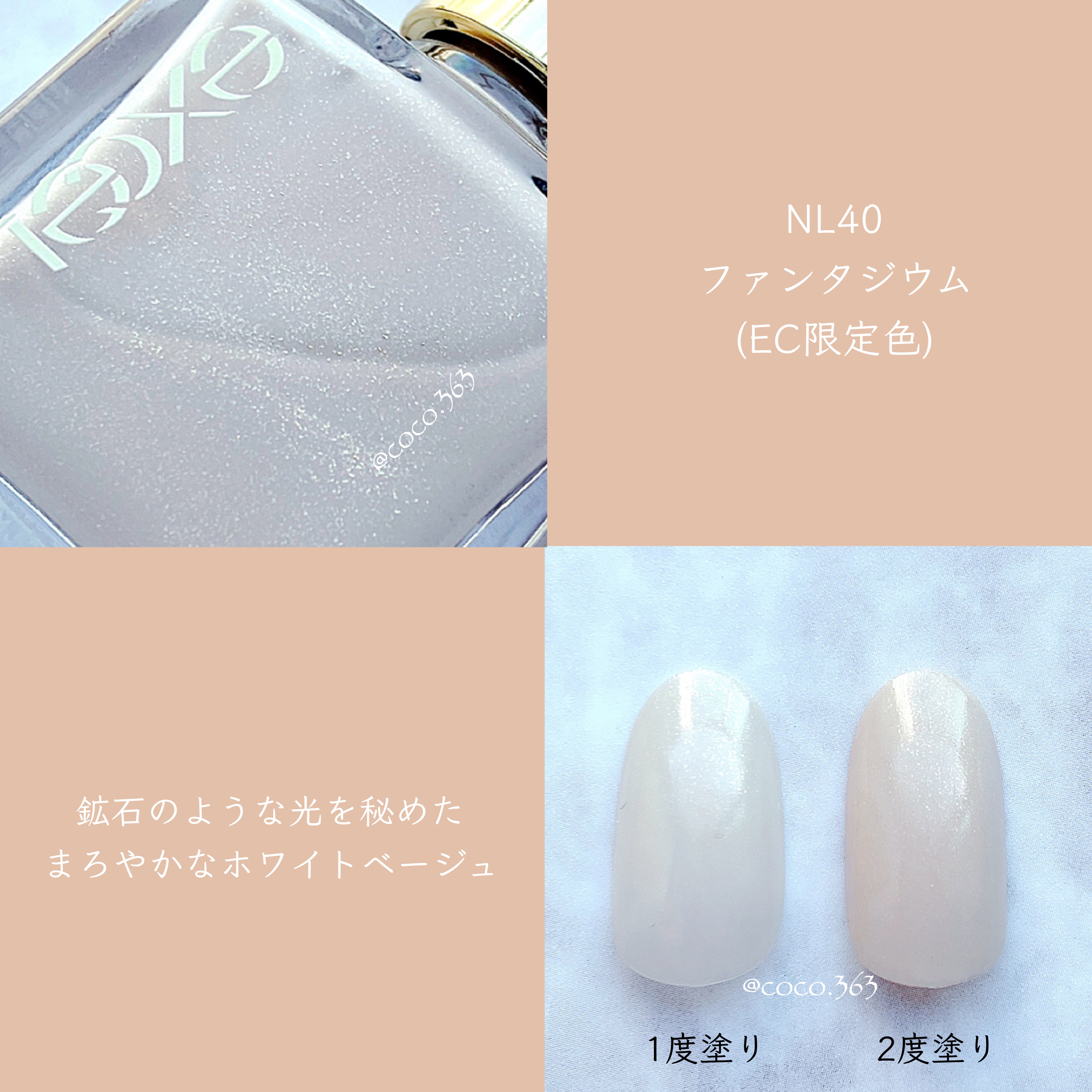 - 仕草まで、綺麗に見せる。毎日つけたい繊細カラーのビューティーネイル。 ①「肌を綺麗に見せる」繊細なカラーバリエーション ②光を取り込み、つるんと透明感のある仕上がり。一度塗りでシアーに、二度塗りで見たままの色に ③なめらかに伸びるテクスチャーでムラになりにくい ④保湿成分を贅沢に配合。爪のことを考えた処方 ⑤毎日使いたくなる高い速乾性と落としやすさ ⑥使いやすく、並べても美しいシンプルなフォルム