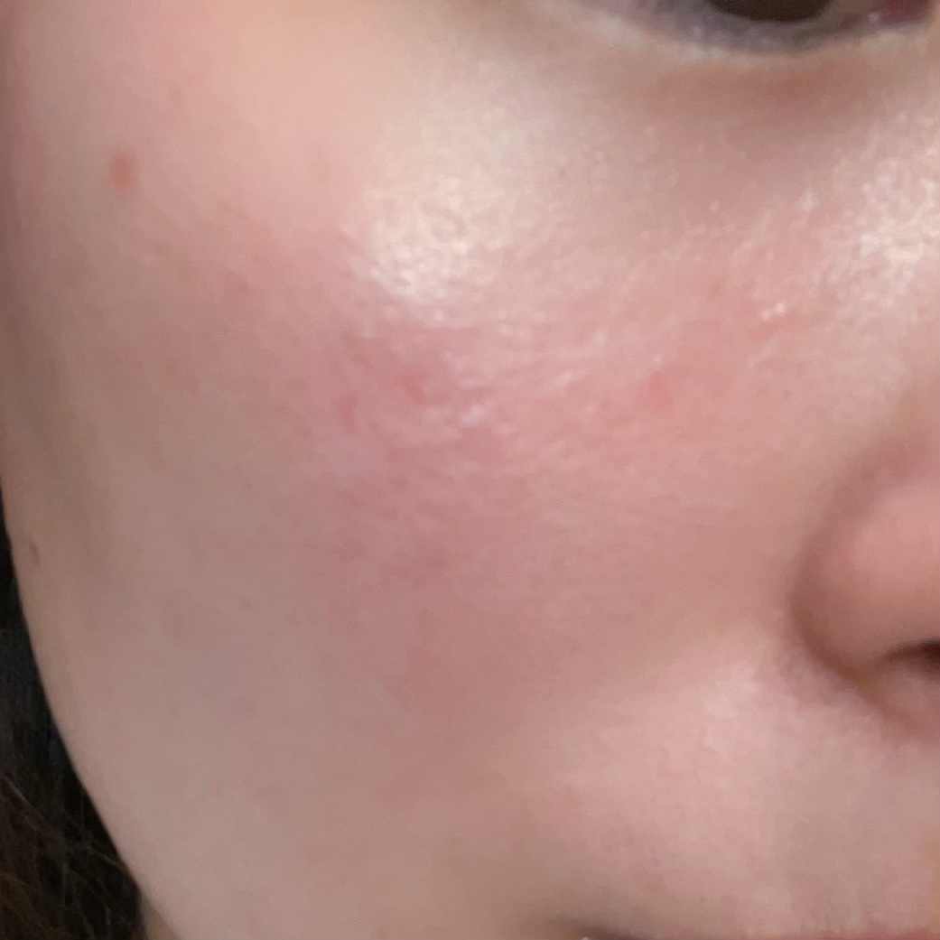 私にはツヤってよりかはテカリって感じでした🥲 ファンデが持ってかれた🥲 あとなんかペタつく。 鼻先の崩れ方はほんとに汚かった🥲 独特なクレヨンの臭いが気になる🤦♀️ しかもヨレやすかった…… 私の頬からはすぐ消え去ってしまう……🥲