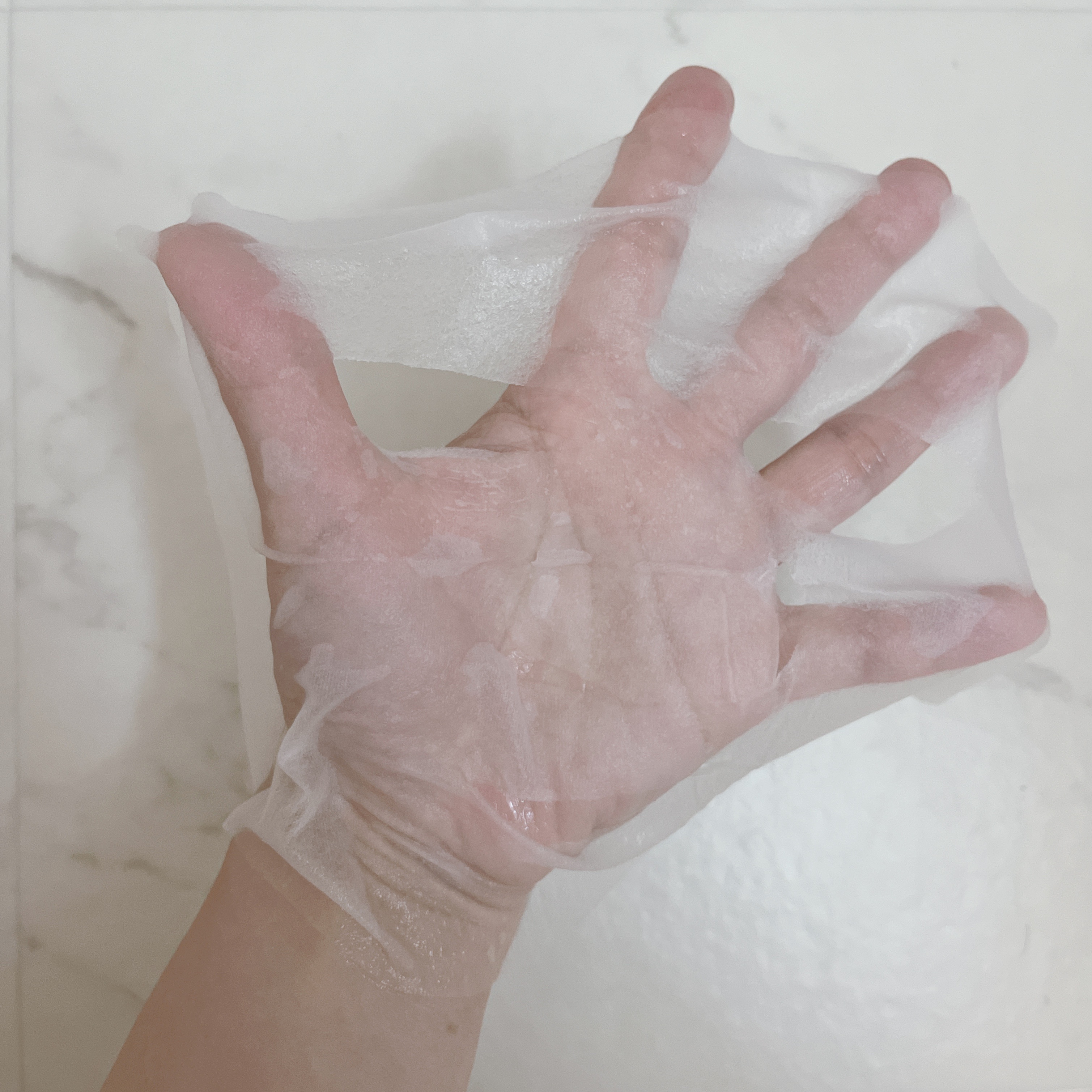 | 美容液がヒタヒタ!!フェイスラインやおでこまでしっかりカバーできる 大きめサイズ、伸びる素材なのが特徴◎ | 詳細を見る |
