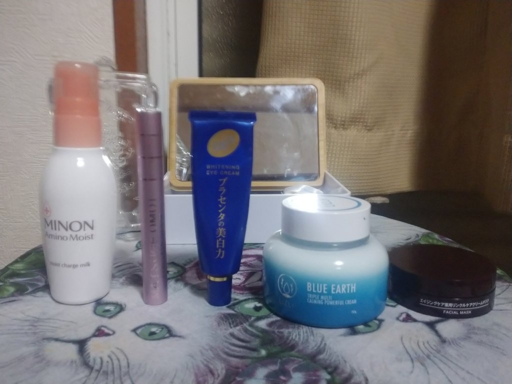 水洗顔➭なめらか本舗ミスト化粧水 N➭とろーり化粧水シンプリー➭LIHAWモイスチャーローション(ジャバジャバ化粧水)➭DAISOCICA ローション➭シカモイストオールインワンゲル(軽いマッサージ)➭美白マスク➭肌ラボ白潤プレミアム薬用浸透美白化粧水➭美容液➭肌ラボ白潤プレミアム 薬用浸透美白乳液
