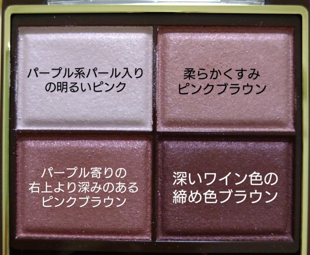 モーヴ系の色が大好きなので迷わず買いました。 今までで1番くすみと青みのあるお色です。 パレットで見る印象よりかなり肌なじみが良かったので、 派手すぎずナチュラルな仕上がりは今までの色と同じですね。 クラッシィブラウン→青みパープルピンク って感じでしょうか。