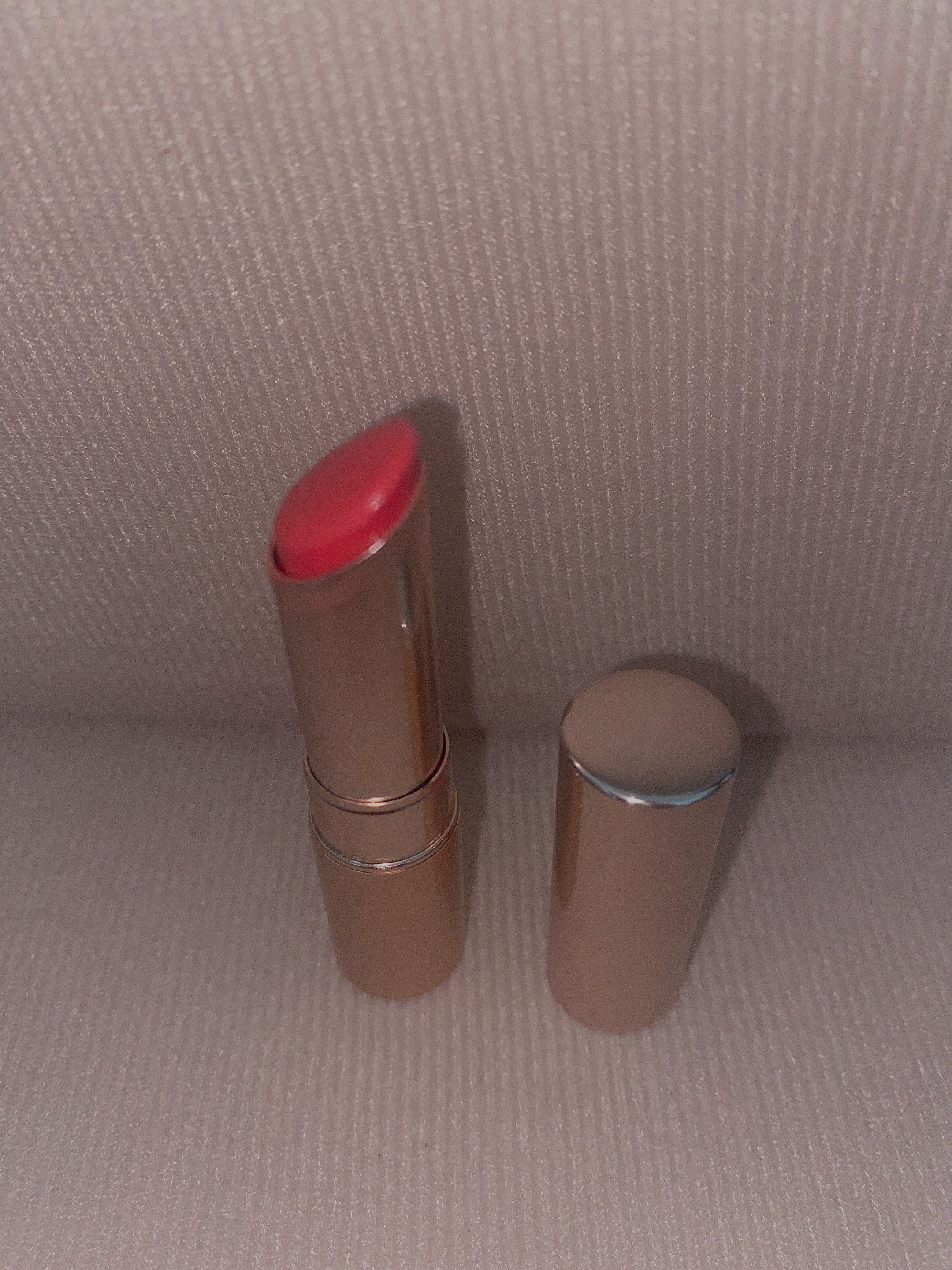 多幸感あふれるクリアなコーラル🩷 特に時間が経つと蛍光感がでてきちゃう。 THEピンクのリップを求めている人にピッタリ! ティッシュオフしても若干色は残ってる! おすすめの塗り方は、いつもよりも少し濃いめに塗ってから、ティッシュオフ!