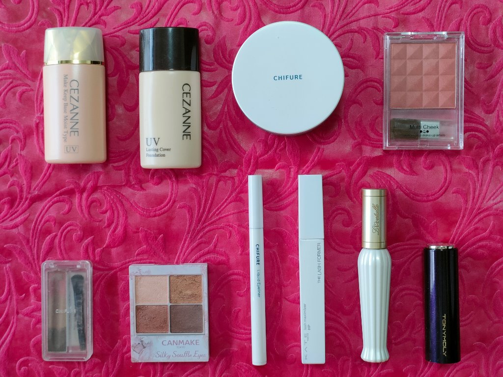 アリィー ニュアンスチェンジUV ジェル RSを、顔全体にまんべんなく塗ります。 RMK RMK ジェルクリーミィファンデーション 103を、顔全体にまんべんなく塗ります。 ジョンソンベビー ジョンソン ベビーパウダーを、顔全体にまんべんなく軽くはたきます。 THE BODY SHOP bronze shade warm glowを、両頬に塗ります。 KATE リフレクトミラーアイズ BR-1の締め色を、眉毛全体にまんべんなく塗ります。 URGLAM UR GLAMBLOOMING EYE COLOR PALETTE 01を、使用しました。 ちふれ リキッド アイライナー 筆ペンタイプ BK30 ブラックを、塗ります。 CEZANNE エアリーカールマスカラを、まつ毛全体にまんべんなく塗ります。 MAYBELLINE NEW YORK コロッサルボリュームエクスプレスを、まつ毛全体にまんべんなく塗ります。 MAYBELLINE NEW YORK SPステイ マットインク 135を、唇全体にまんべんなく塗ります。