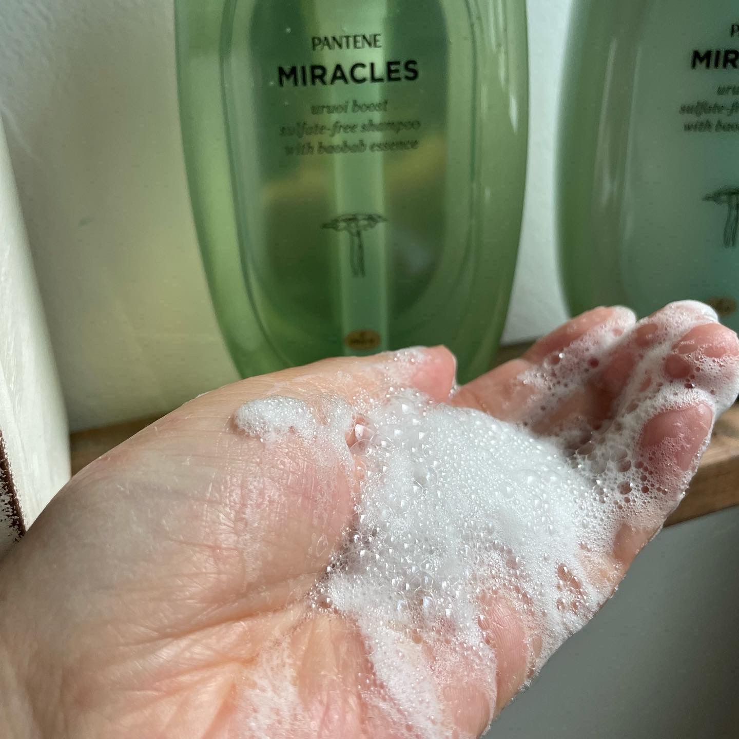 ボトルのフォルムがマカロンみたいでかわいくて気になってた「パンテーン ミラクルズ うるおいブースト」🍑✨ 使ってみたら、香りがめちゃくちゃ良くて家族にも褒められた🥰 クリーンムスクの香りがふんわり続くのが嬉しい💕 シャンプーは泡立ちがよく、泡がしっとりしてる感じ◎ ドライ後の髪もまとまりが良くて、これからも使い続けたい!