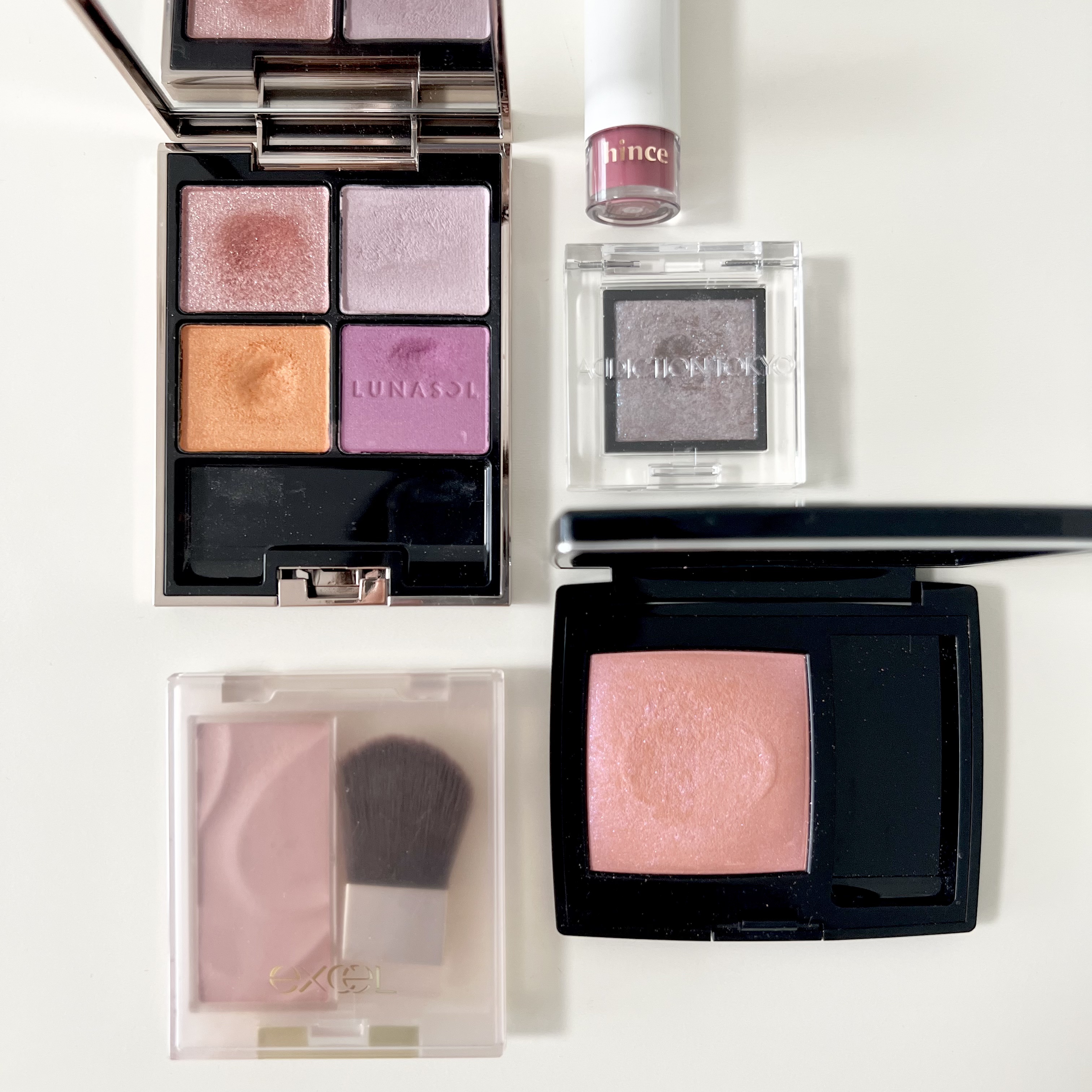 アイシャドウは実物の方が相当可愛い! 特に左上のラメの破壊力、、、 左側ボルドーは本当にふんわりと。 その上から右側のライラック?ピンクを 乗せると透明感爆発でした🥹👏🏻 本当にSUQQUは裏切らない可愛さ。 4月に発売されるもう一色のシグニチャーも、 5月発売のサマーもしっかり買うよ☺️❤️🔥