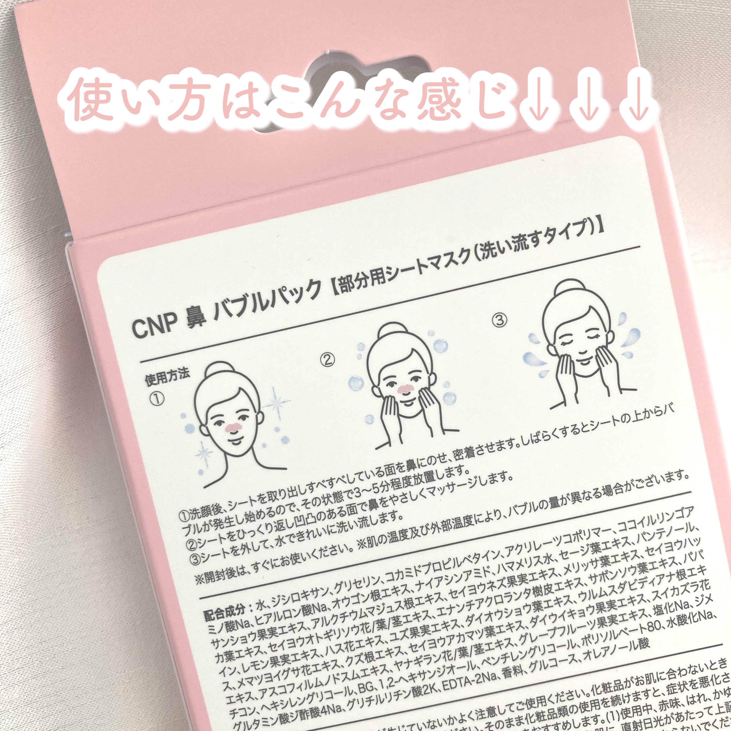 累積販売2000万枚(※24.11.28基準)突破した大人気鼻パックを使ってみたら、、 この形は貼って剥がすあのタイプ…ではなく、貼って浮かせて引き締める毛穴ケアパックです😂 最後にSTEP2で引き締め&鎮静保湿ケアします。こちらにはタンニン成分が豊富なクリ殻エキス、カシア樹皮エキスが配合されています🌳