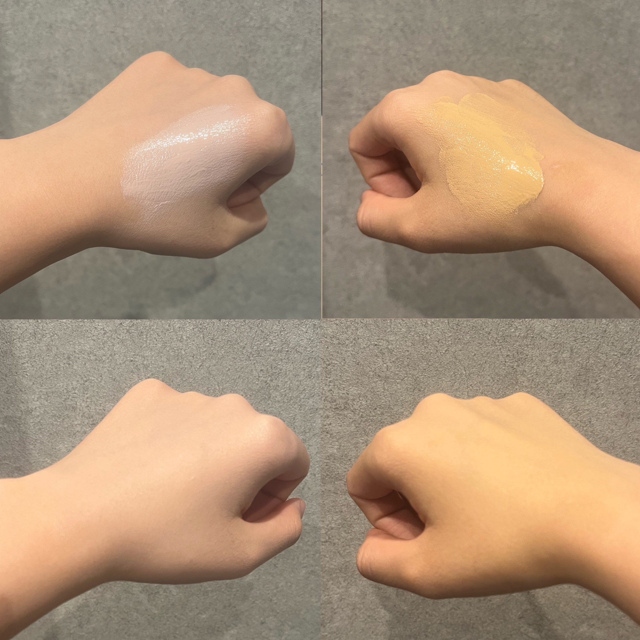 密着力は普通 爪で引っ掻けばヨレる ウォータープルーフとあるように、汗には強い トーンアップ効果が高いので、 明るさでくすみを飛ばしてくれる 程よい艶感でテカリすぎない 肌に優しくメイクできる 厚塗り感が無く、透明感ある肌にしてくれる