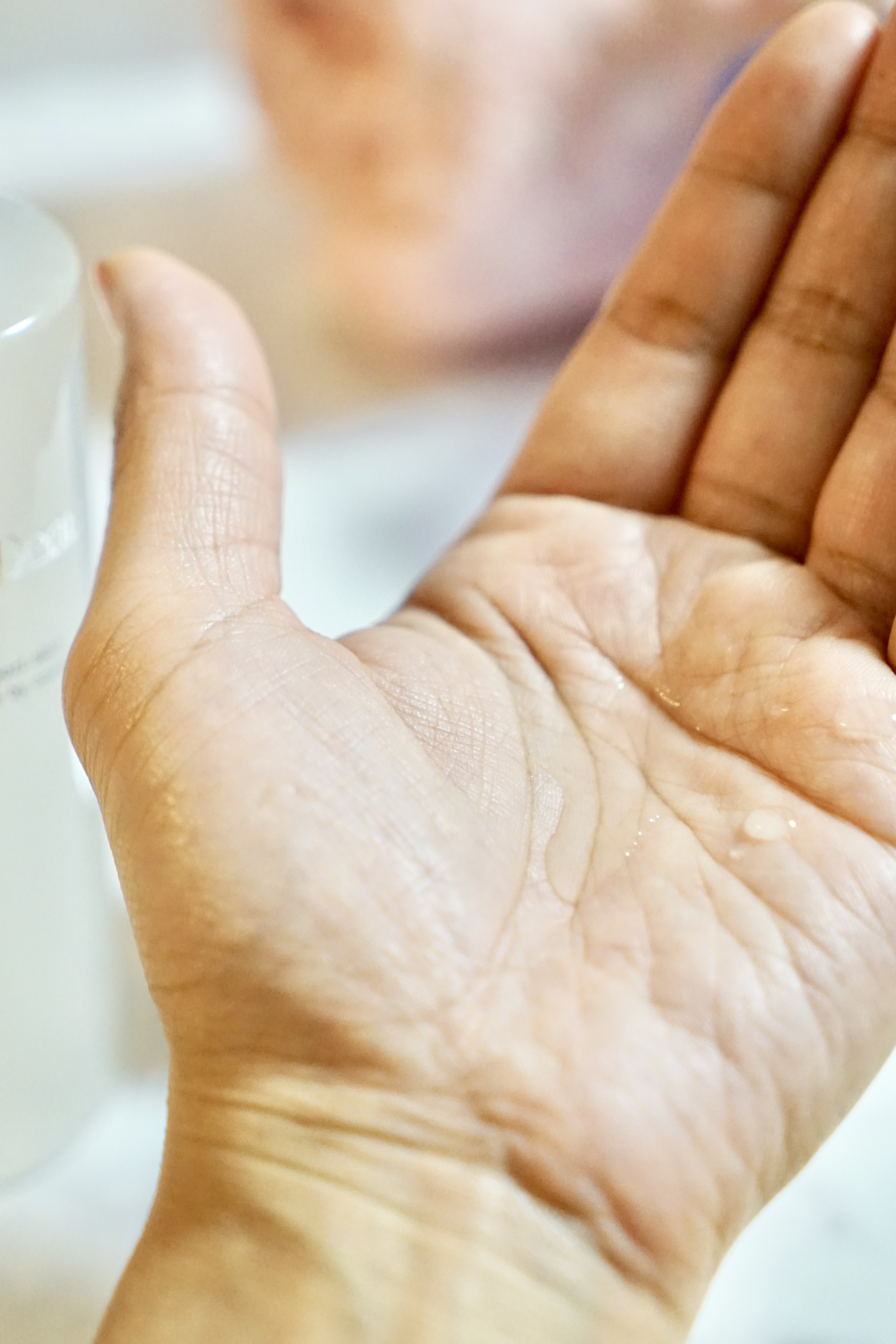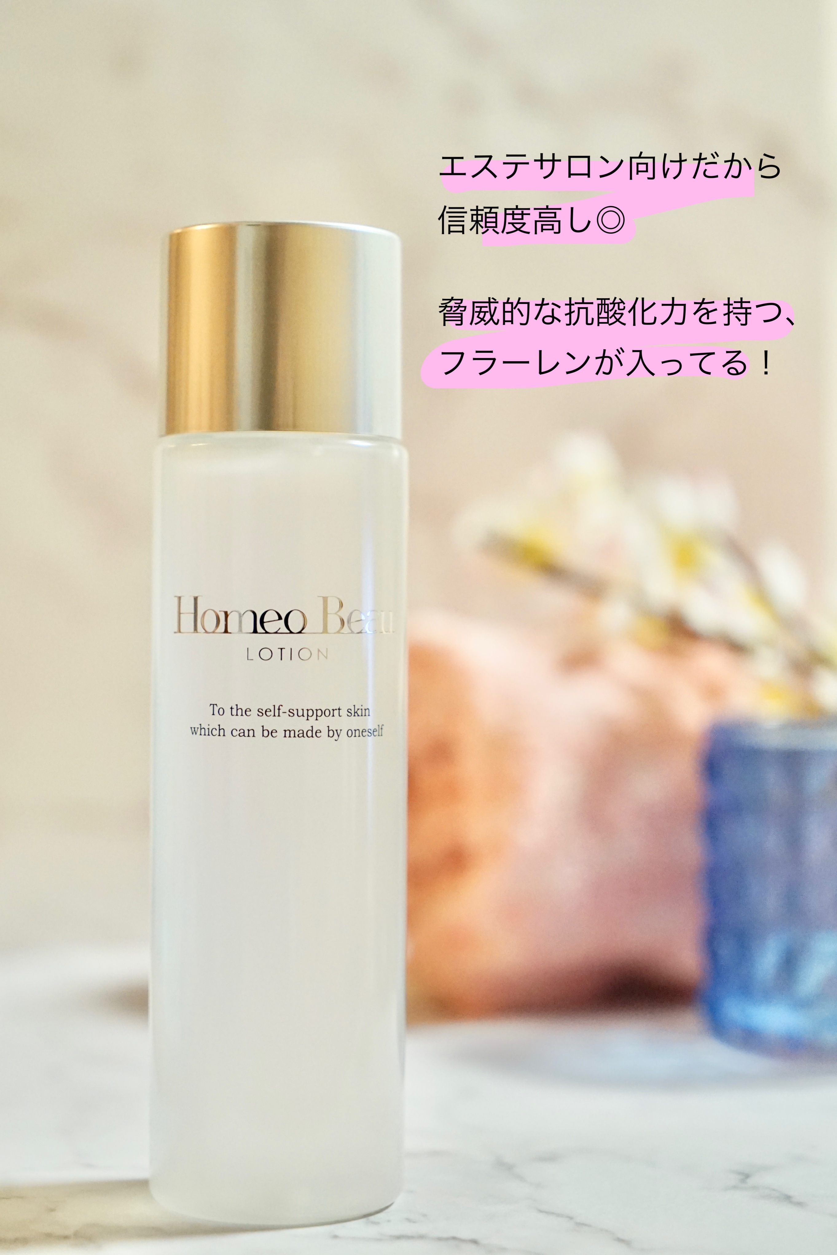 1日頑張った肌にはしっかりと高保湿な『ホメオバウローション』で「水分補給」してあげています。 ・角質層へのNMF補給 ・フラーレン(整肌成分)が美しい肌へ導く ・美容成分をたっぷりと配合! 気になるほうれい線やおでこの小皺には重ね付けて念入りに入れ込んでいます。内側がもっちりする感じが気持ちいい〜❁ エステティックサロン向けのプロ用化粧品なので処方にかなりこだわっている様子!
