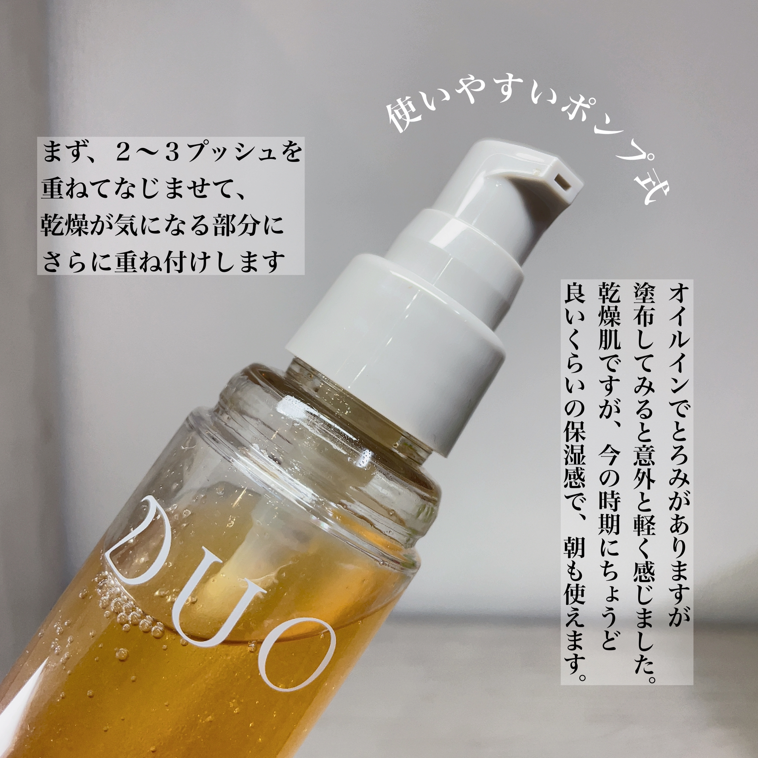 DUOから商品提供を頂きました。@duo_cosmeDUOといえばクレンジングバームが有名ですよね❗️一本で5役*の化粧水を使ってみました*保湿、エイジングケア(年齢に応じたお手入れのこと)、透明感(うるおいによる)、肌ひきしめ、コンディショ...