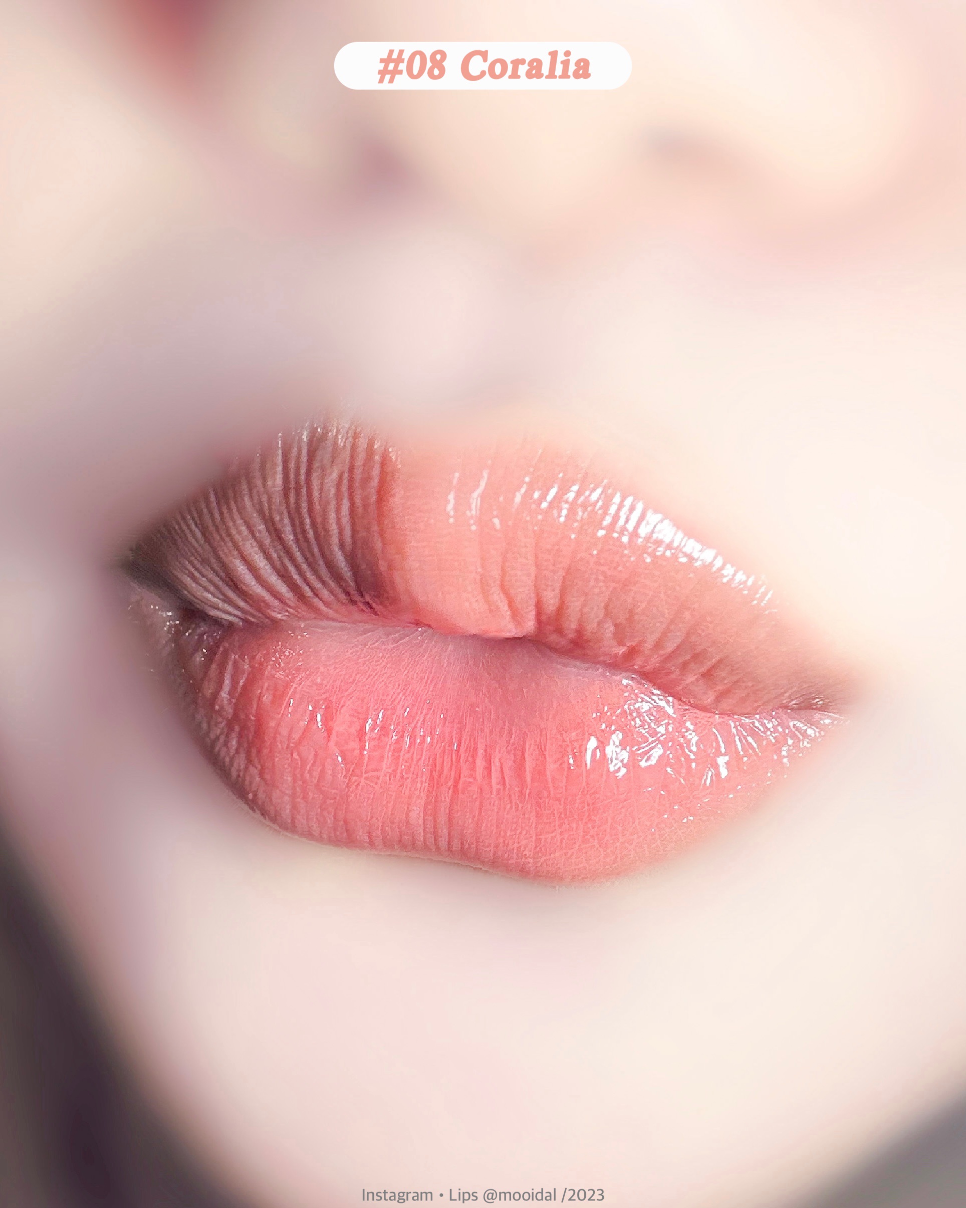 - もちっとした水膜で弾けそうなツヤリップ 1.軽い塗り心地のなめらかで透明な水爆弾ツヤ 2.塗った瞬間から唇を鮮やかに彩る多彩なカラーバーム 3.植物性保湿オイルでしっとりもっちり保湿バーム